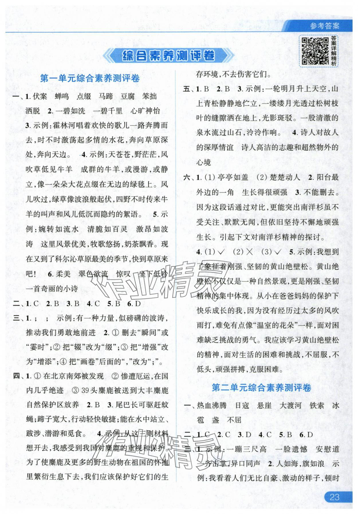 2025年亮点给力提优课时作业本六年级语文上册人教版参考答案第23页