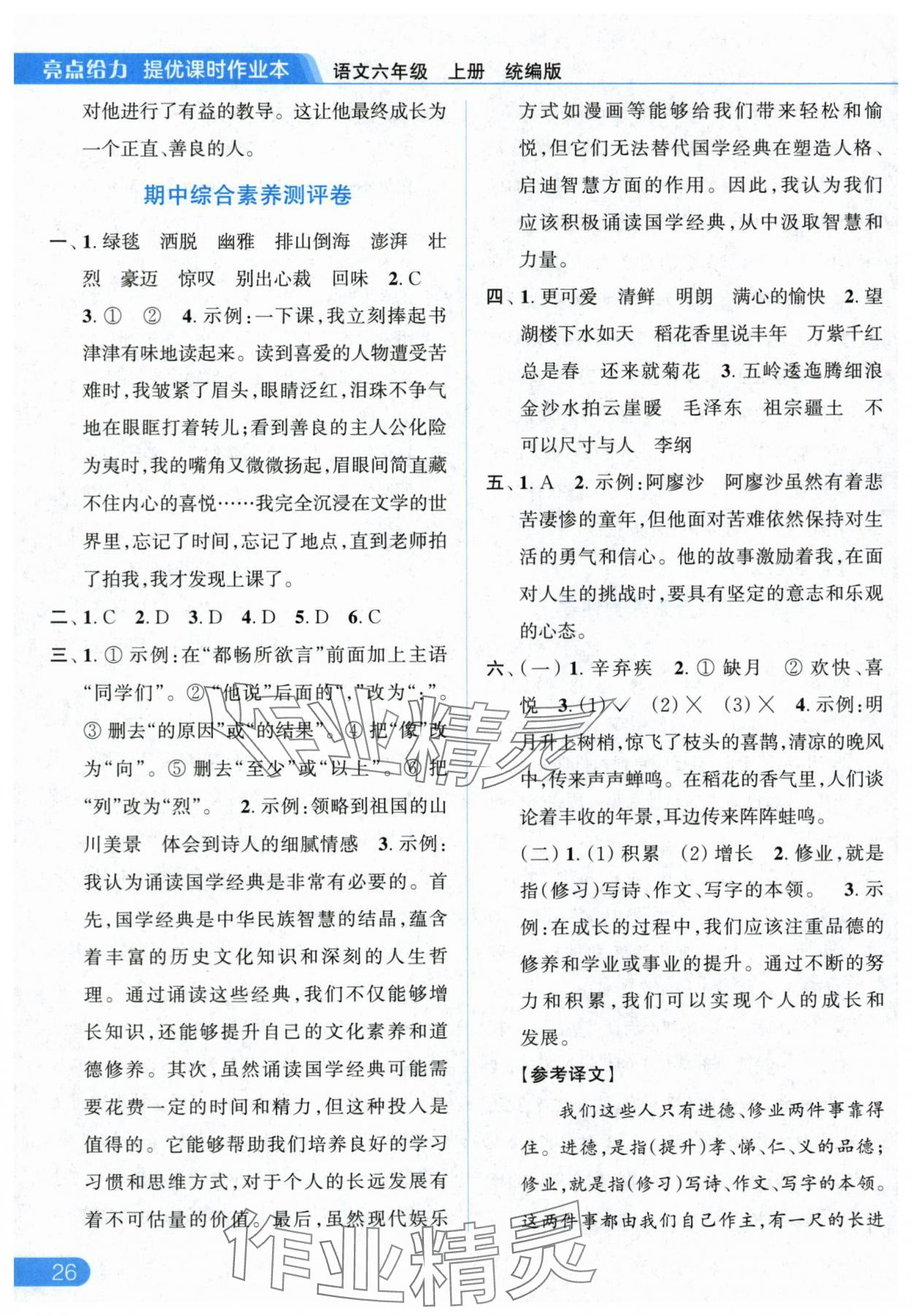 2025年亮点给力提优课时作业本六年级语文上册人教版参考答案第26页
