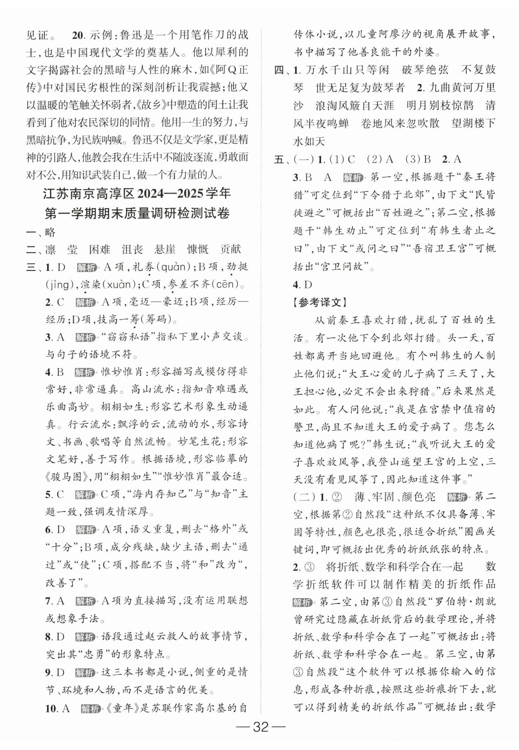 2025年亮点给力提优课时作业本六年级语文上册人教版第32页