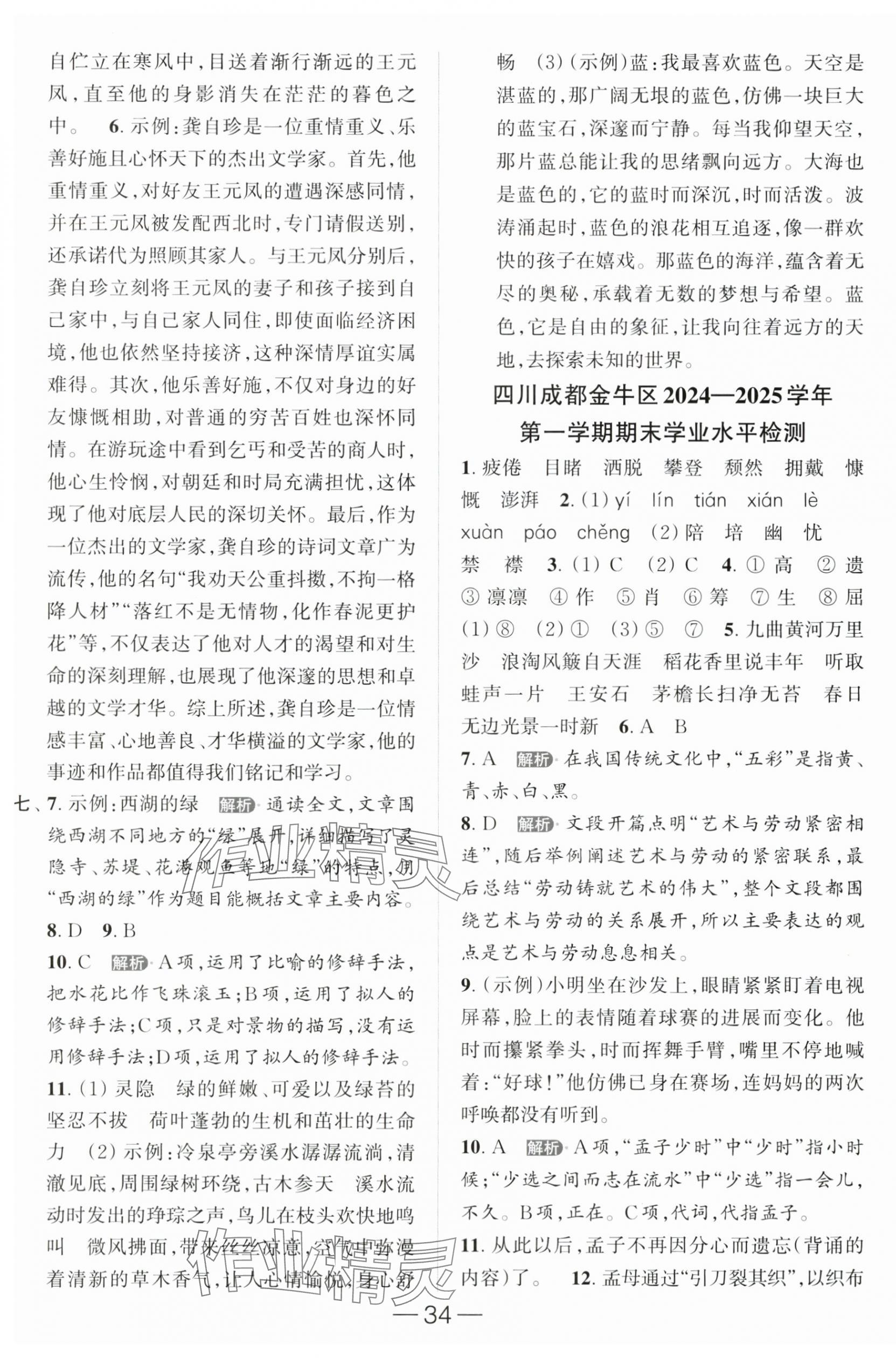 2025年亮点给力提优课时作业本六年级语文上册人教版第34页