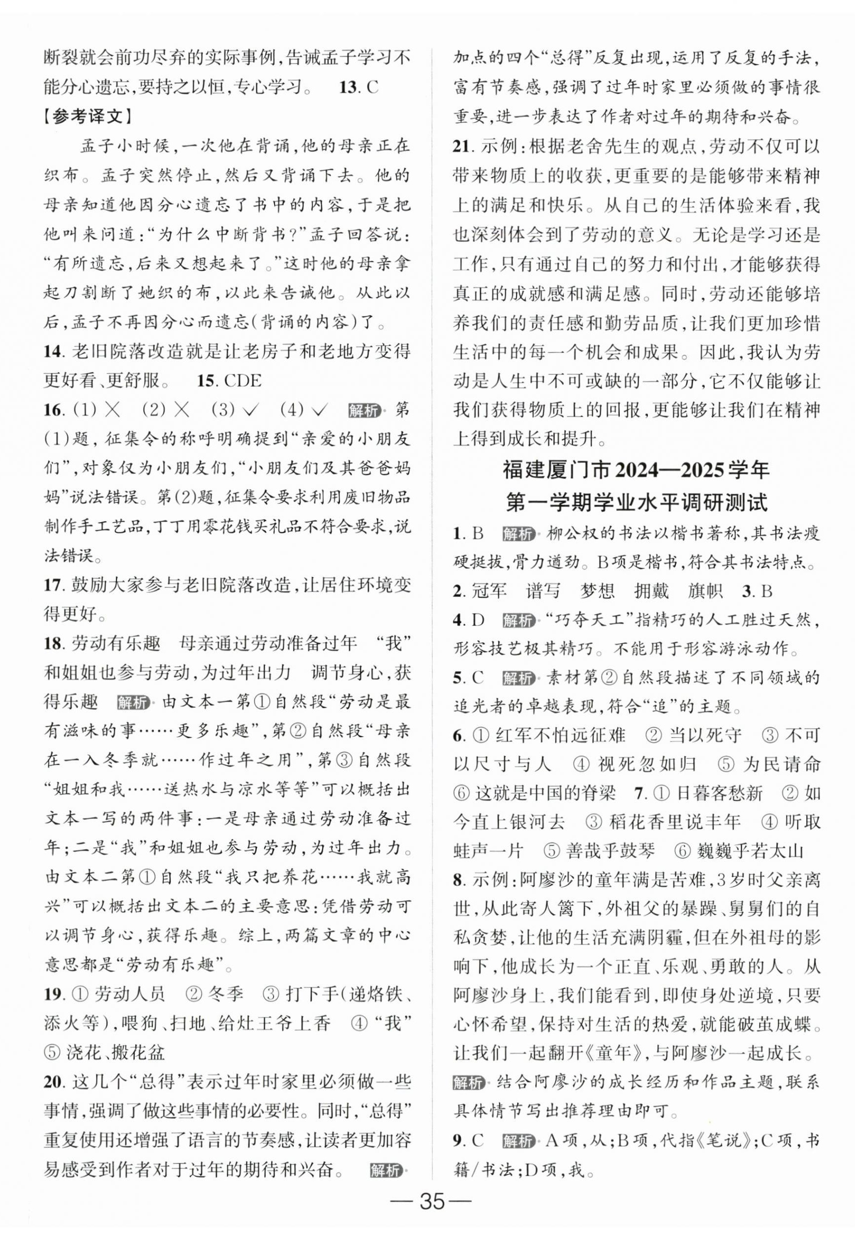 2025年亮点给力提优课时作业本六年级语文上册人教版第35页
