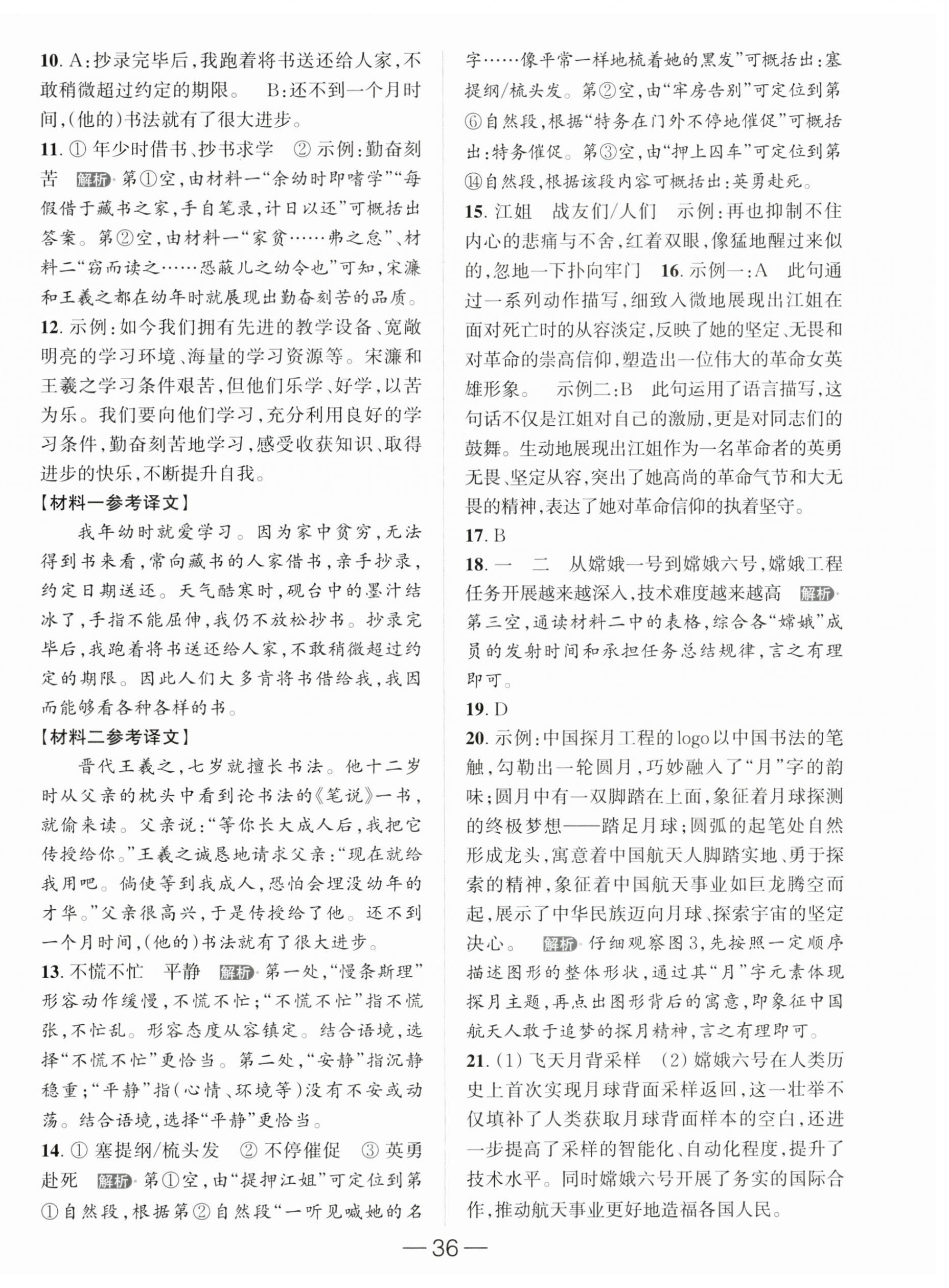 2025年亮点给力提优课时作业本六年级语文上册人教版第36页