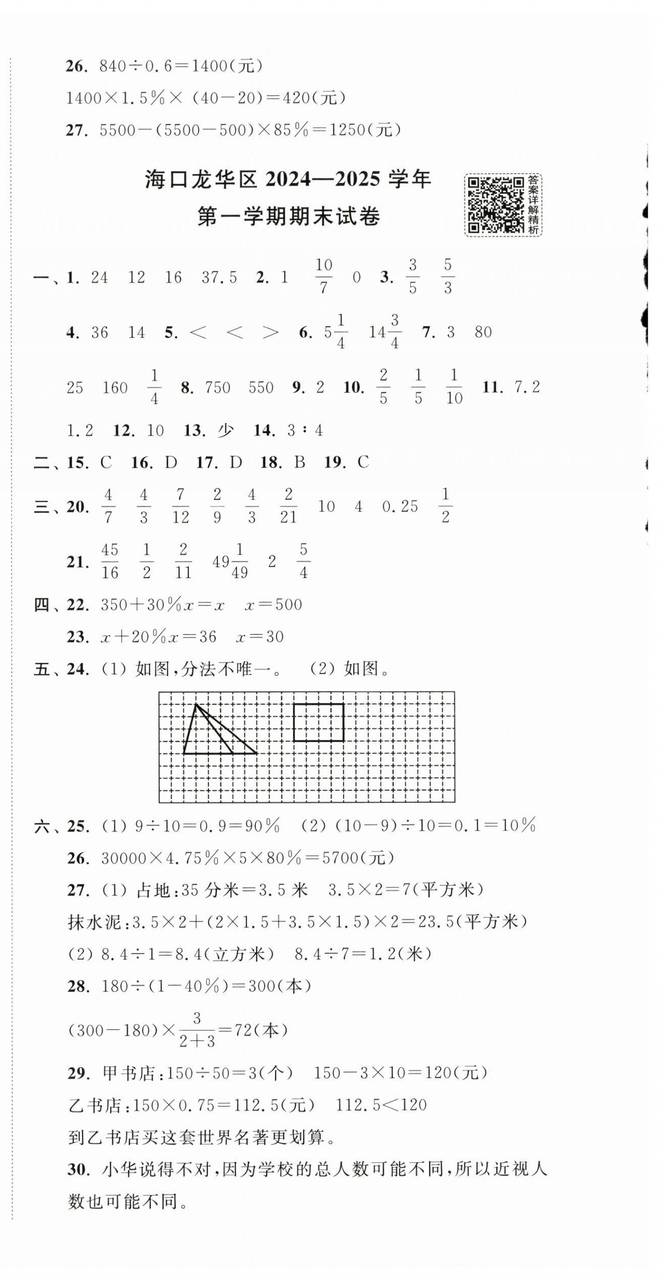 2025年亮点给力提优课时作业本六年级数学上册江苏版第44页