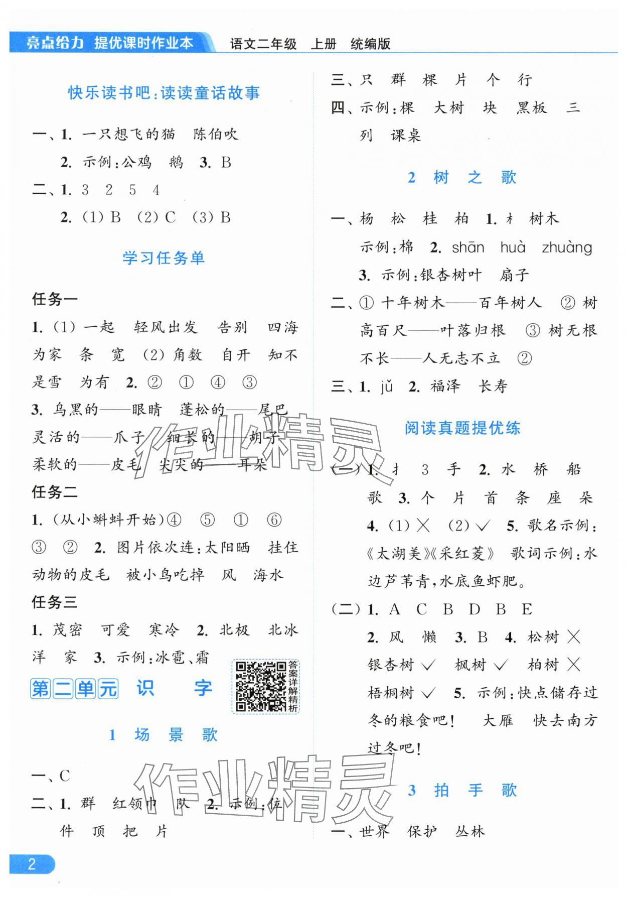 2025年亮点给力提优课时作业本二年级语文上册统编版参考答案第2页