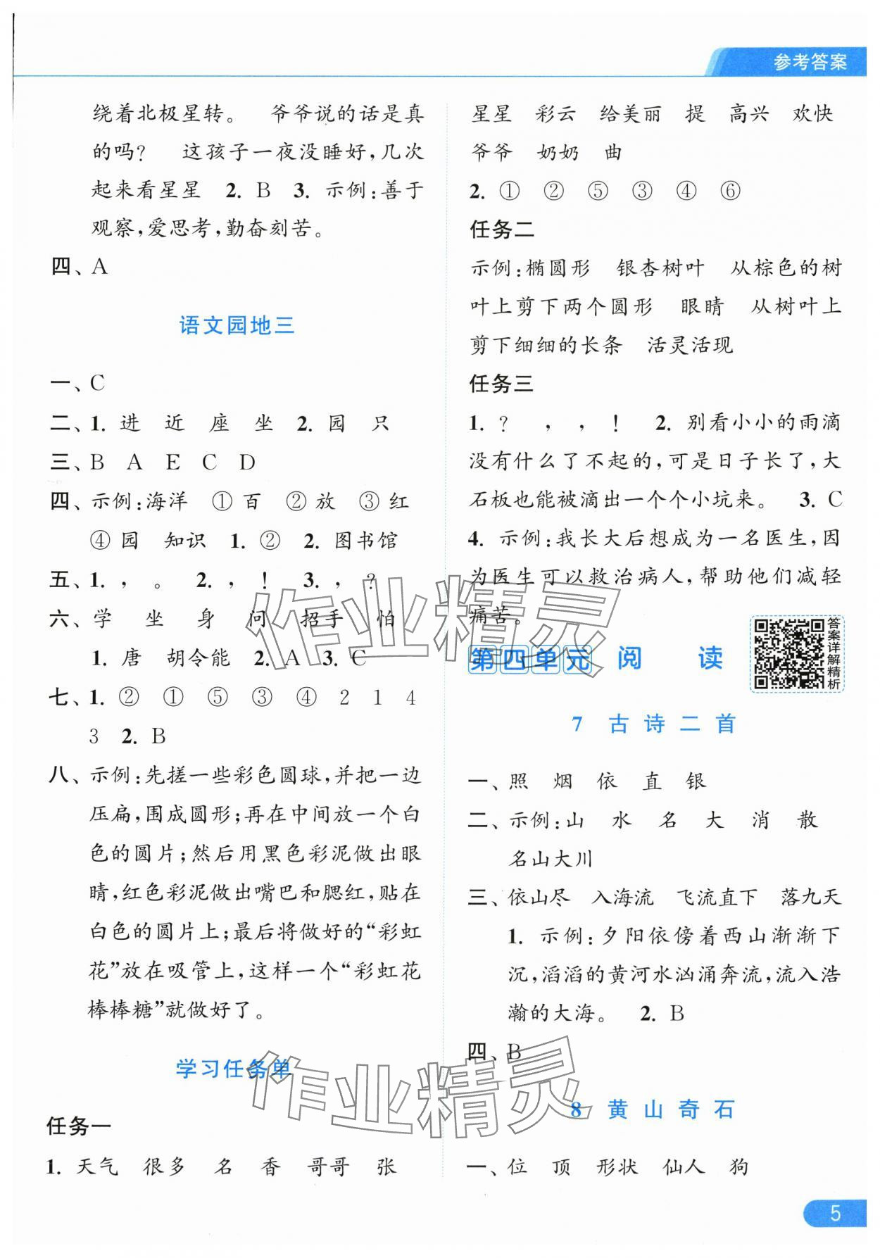 2025年亮点给力提优课时作业本二年级语文上册统编版参考答案第5页