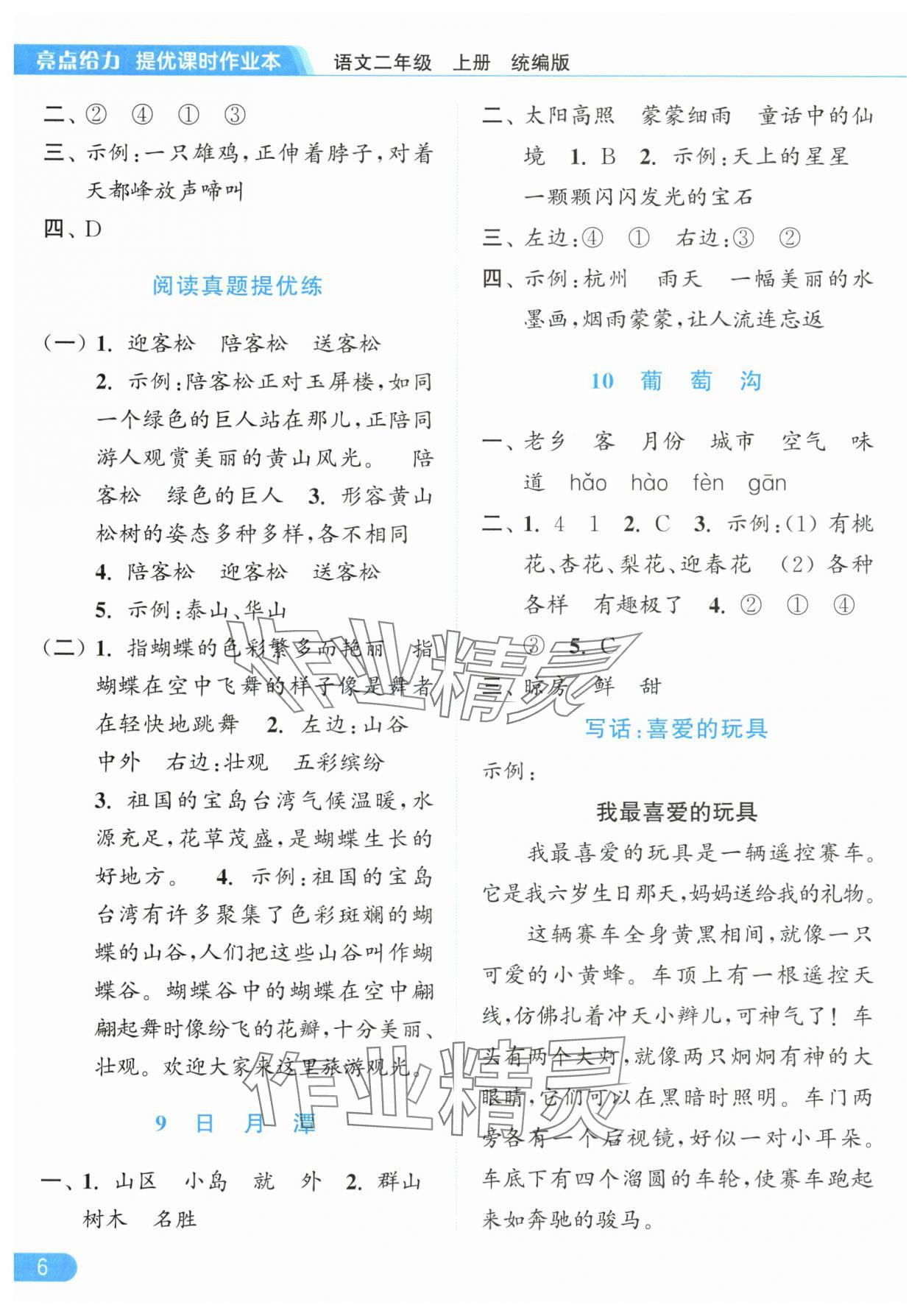 2025年亮点给力提优课时作业本二年级语文上册统编版参考答案第6页