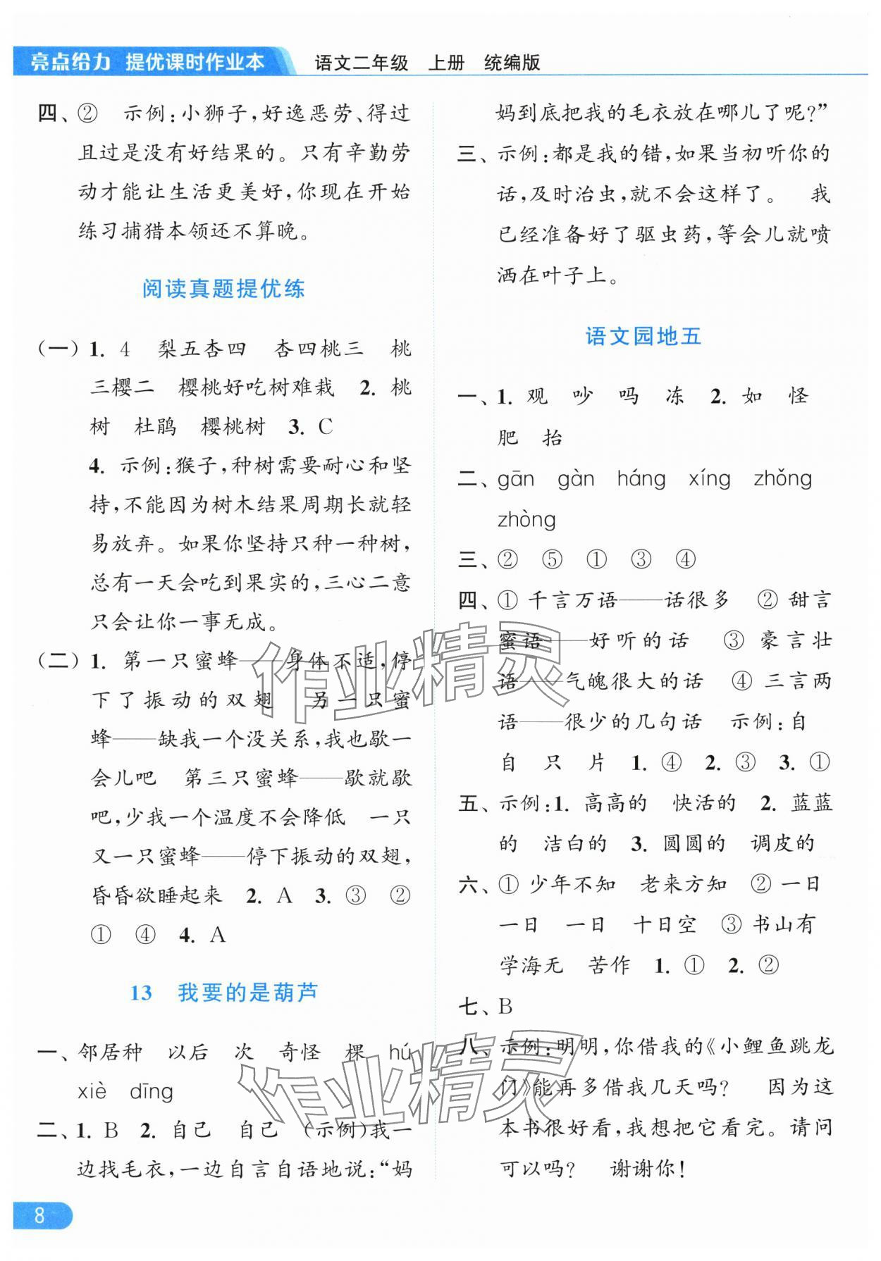 2025年亮点给力提优课时作业本二年级语文上册统编版参考答案第8页