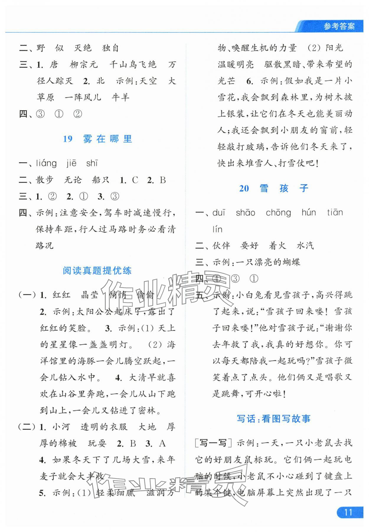2025年亮点给力提优课时作业本二年级语文上册统编版参考答案第11页