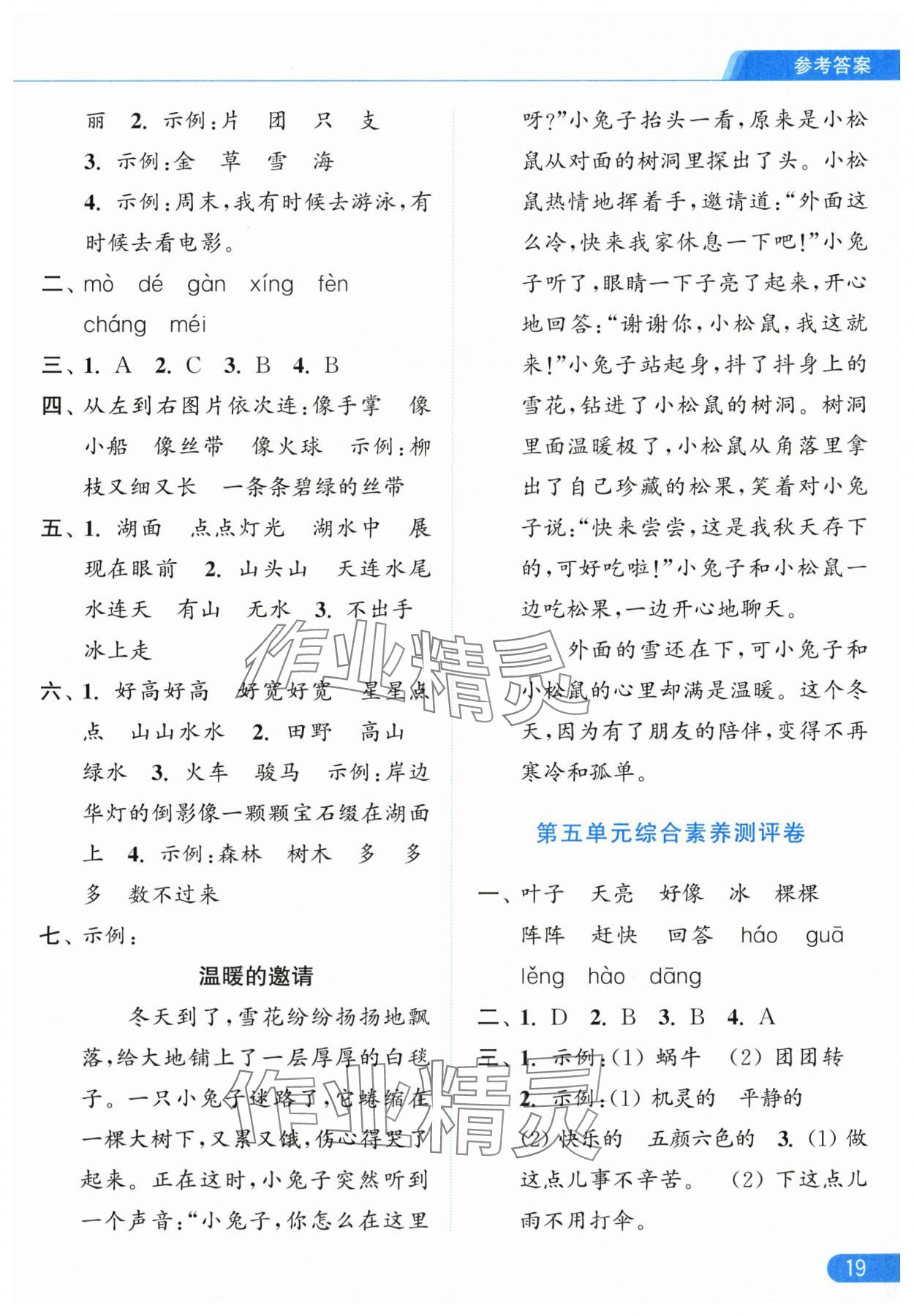 2025年亮点给力提优课时作业本二年级语文上册统编版参考答案第19页