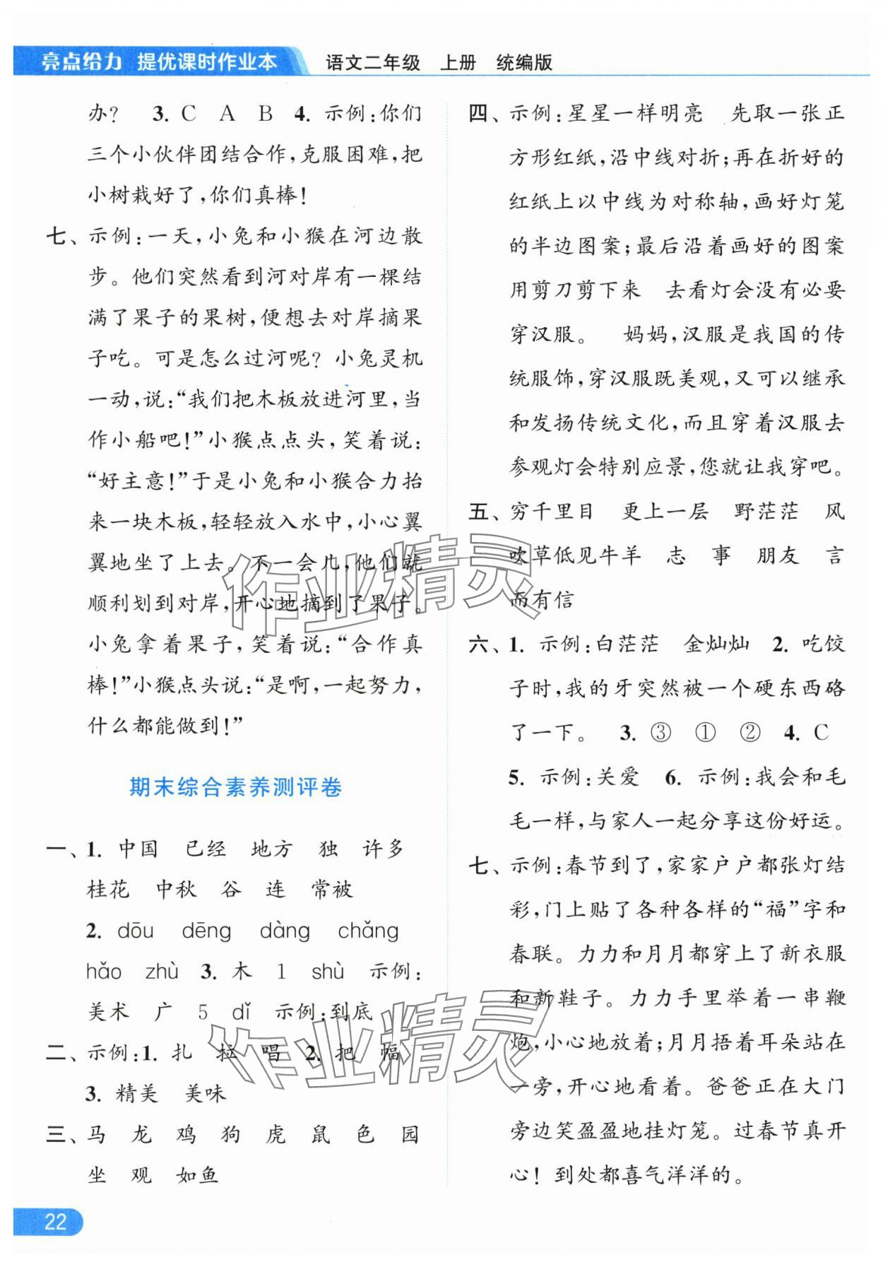 2025年亮点给力提优课时作业本二年级语文上册统编版参考答案第22页