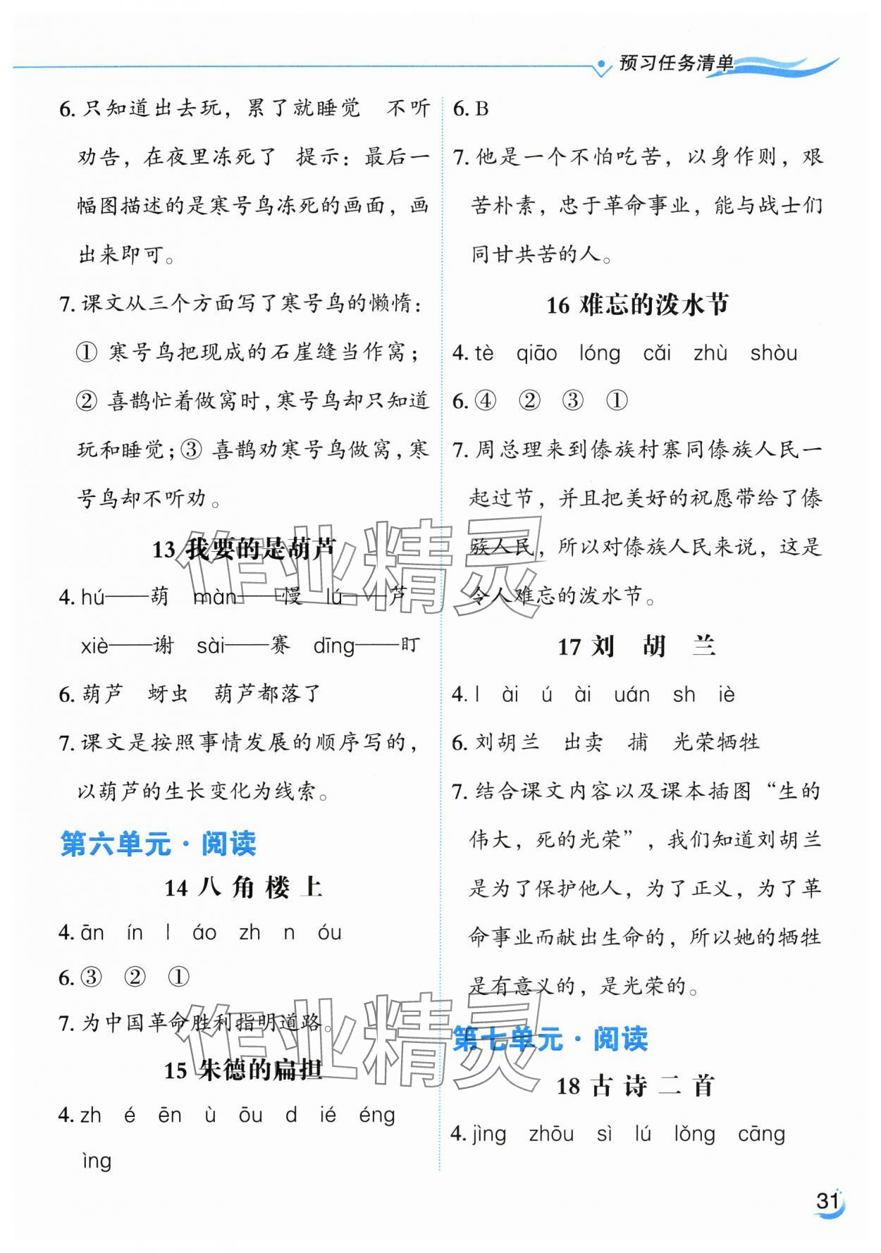2025年亮点给力提优课时作业本二年级语文上册统编版参考答案第30页
