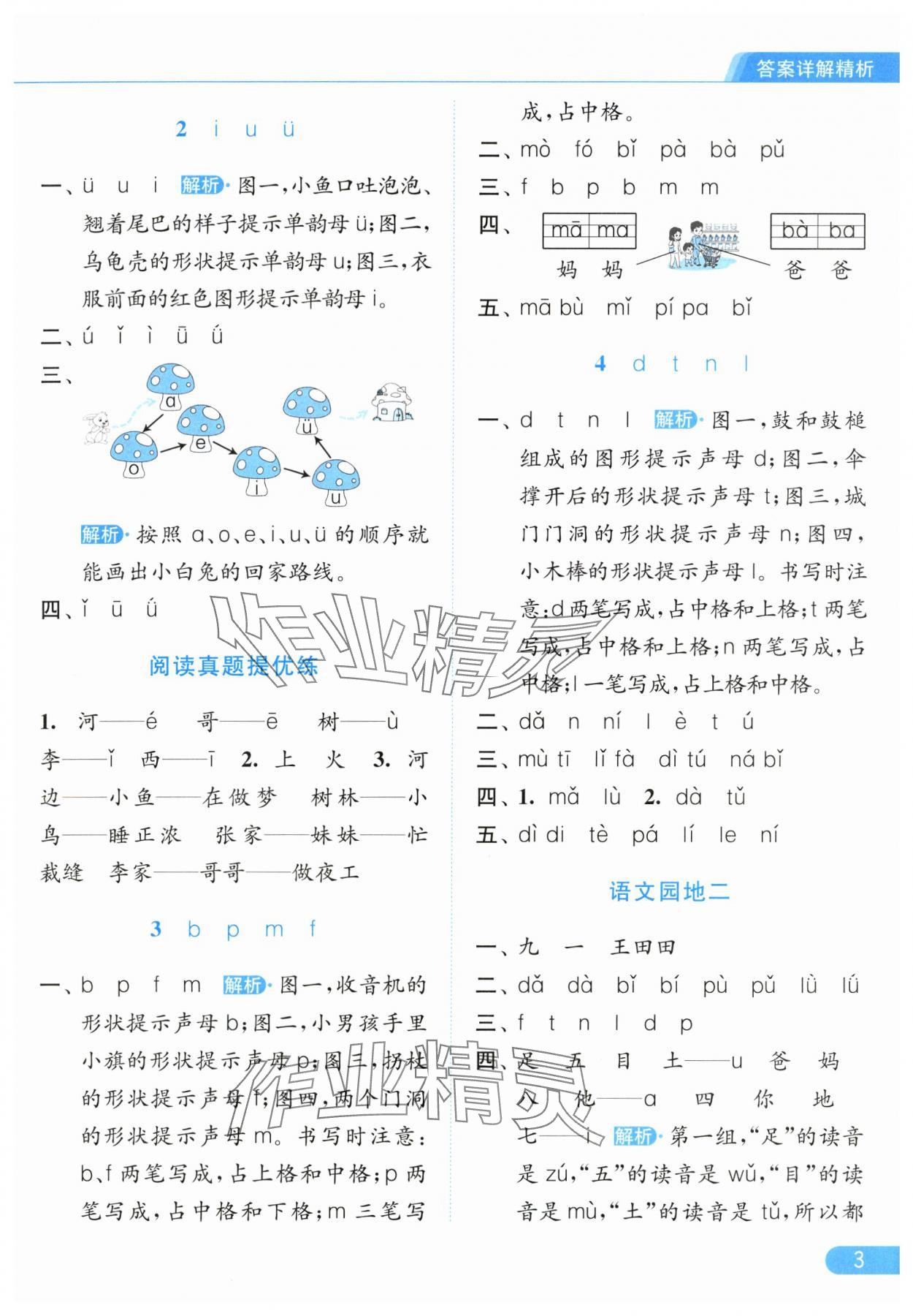 2025年亮点给力提优课时作业本一年级语文上册人教版参考答案第3页