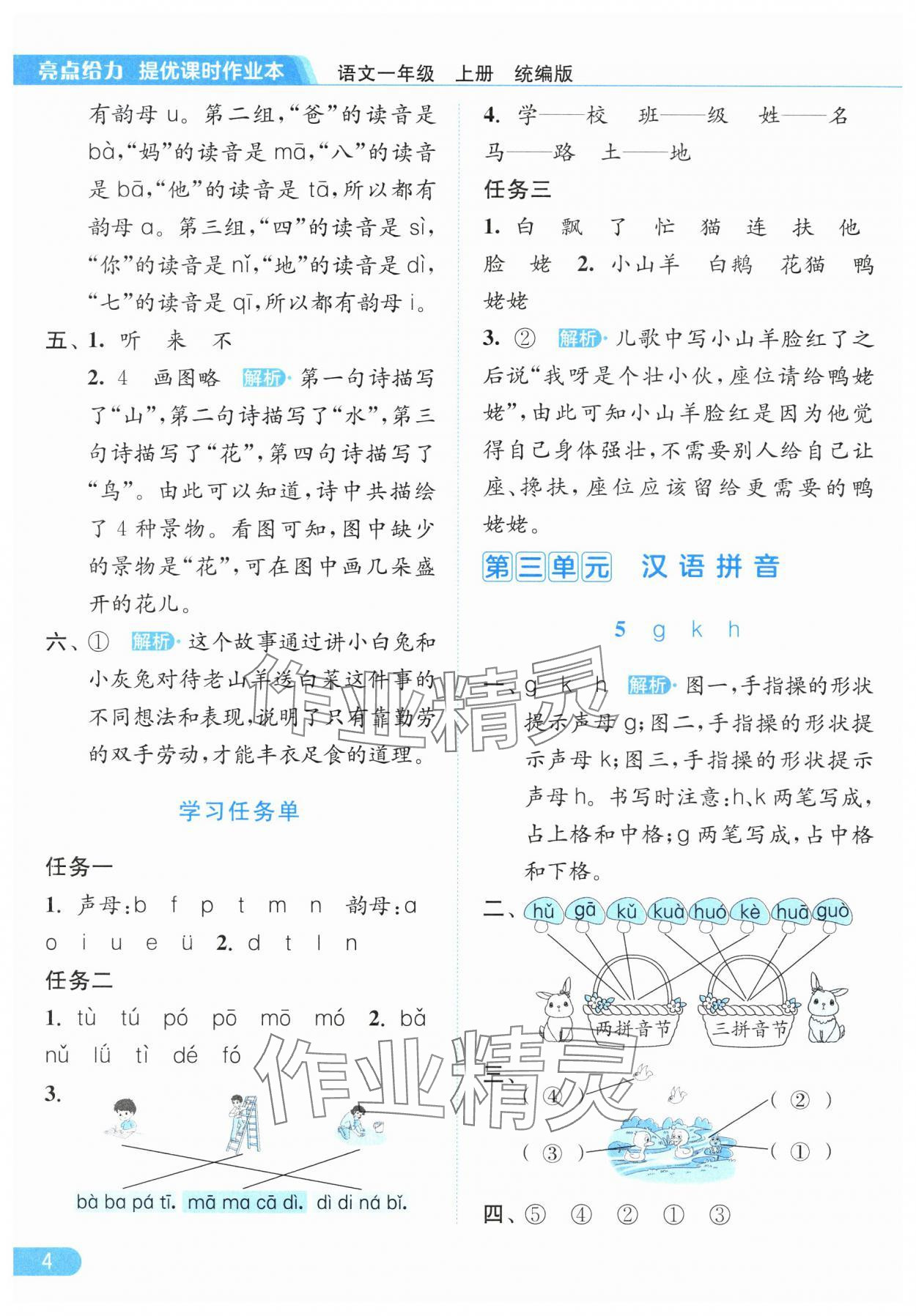 2025年亮点给力提优课时作业本一年级语文上册人教版参考答案第4页