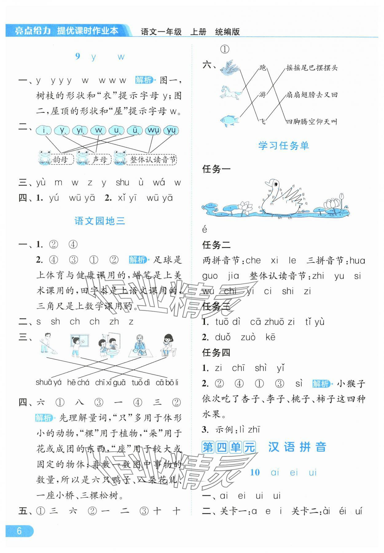 2025年亮点给力提优课时作业本一年级语文上册人教版参考答案第6页