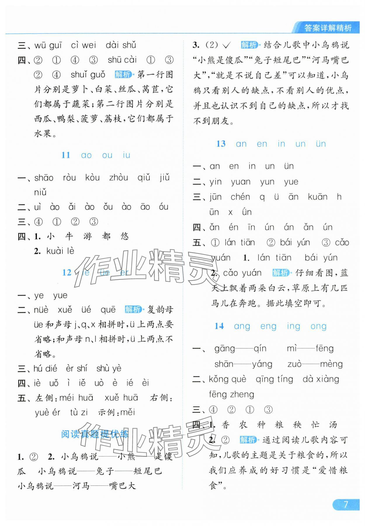 2025年亮点给力提优课时作业本一年级语文上册人教版参考答案第7页