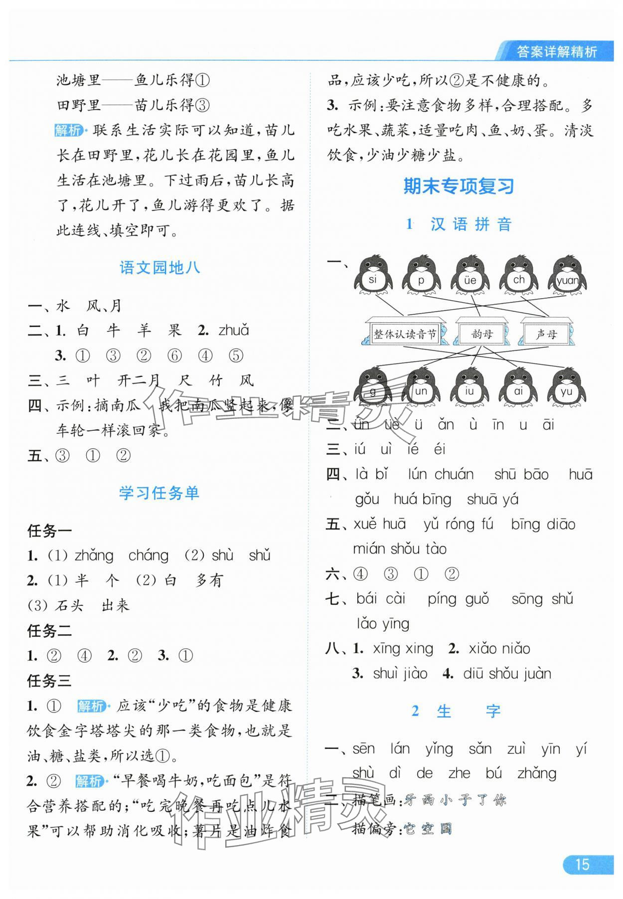 2025年亮点给力提优课时作业本一年级语文上册人教版参考答案第15页