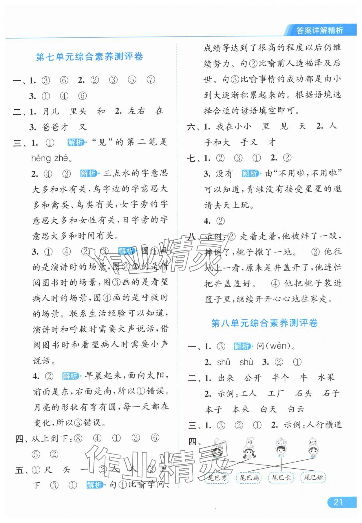 2025年亮点给力提优课时作业本一年级语文上册人教版参考答案第21页