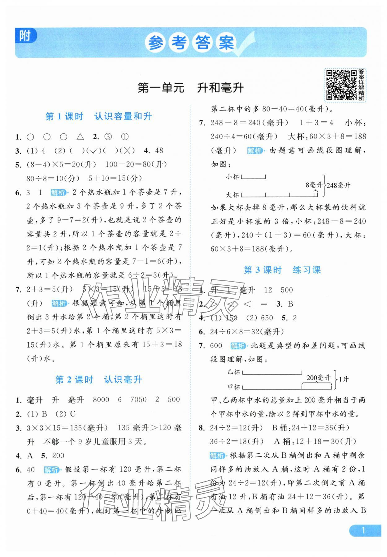 2025年亮点给力提优课时作业本四年级数学上册江苏版参考答案第1页
