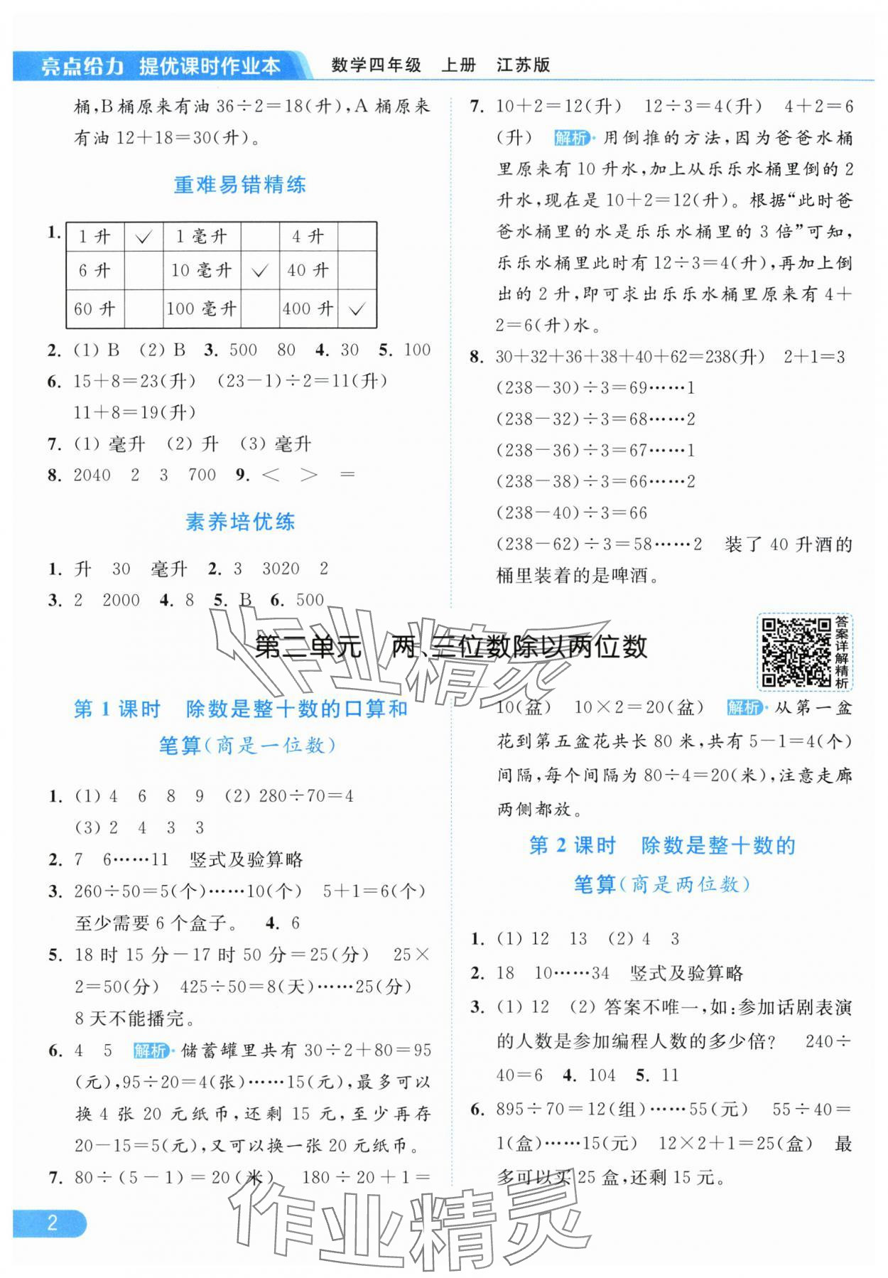 2025年亮点给力提优课时作业本四年级数学上册江苏版参考答案第2页