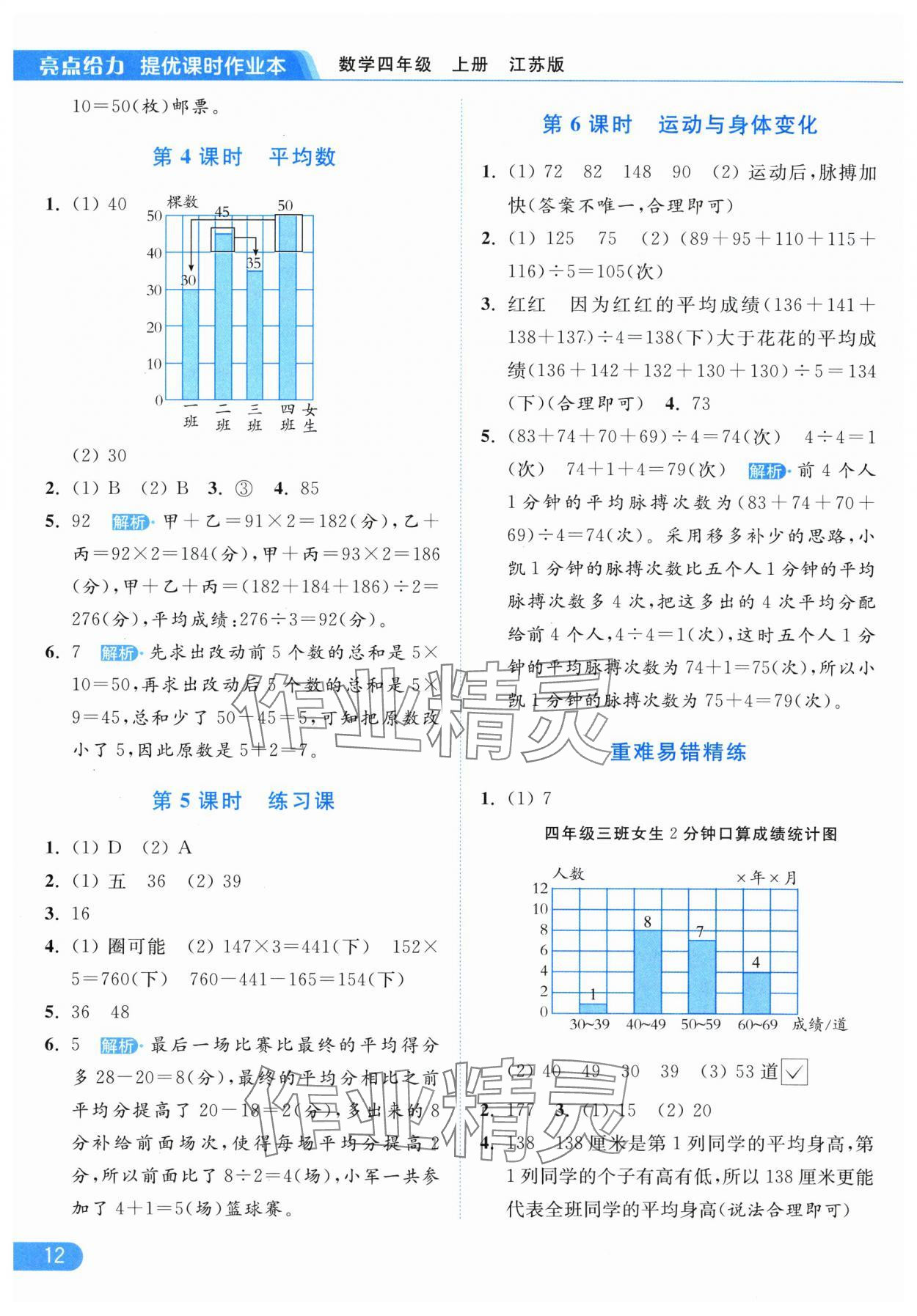 2025年亮点给力提优课时作业本四年级数学上册江苏版参考答案第12页