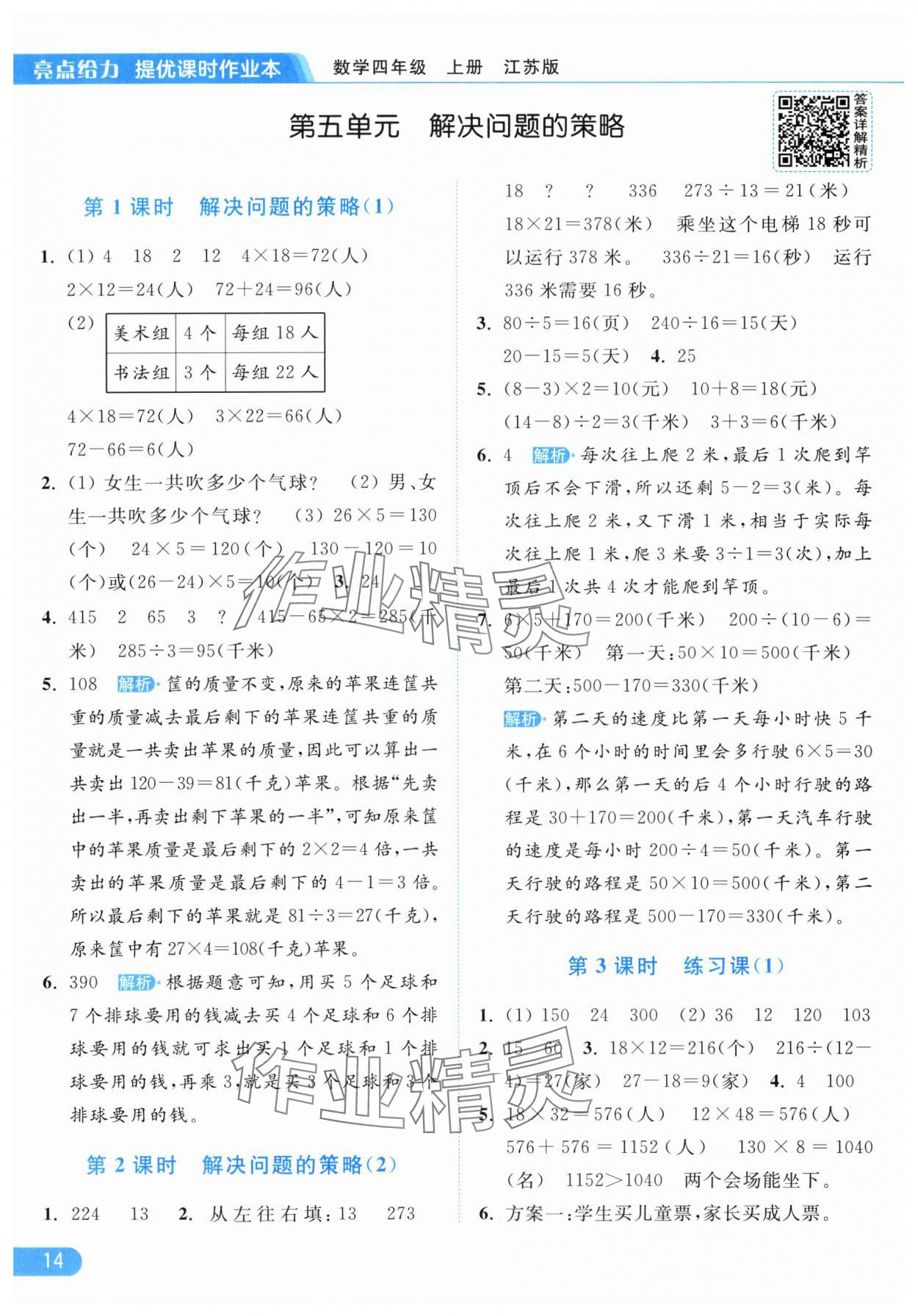 2025年亮点给力提优课时作业本四年级数学上册江苏版参考答案第14页