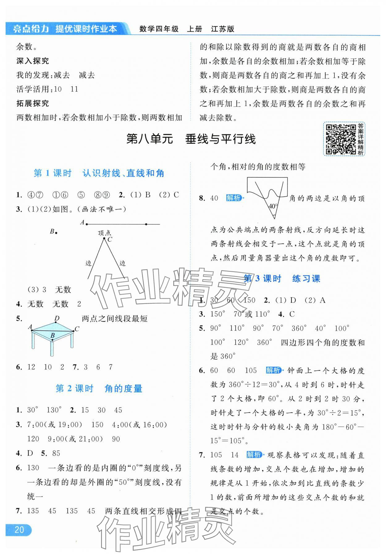 2025年亮点给力提优课时作业本四年级数学上册江苏版参考答案第20页