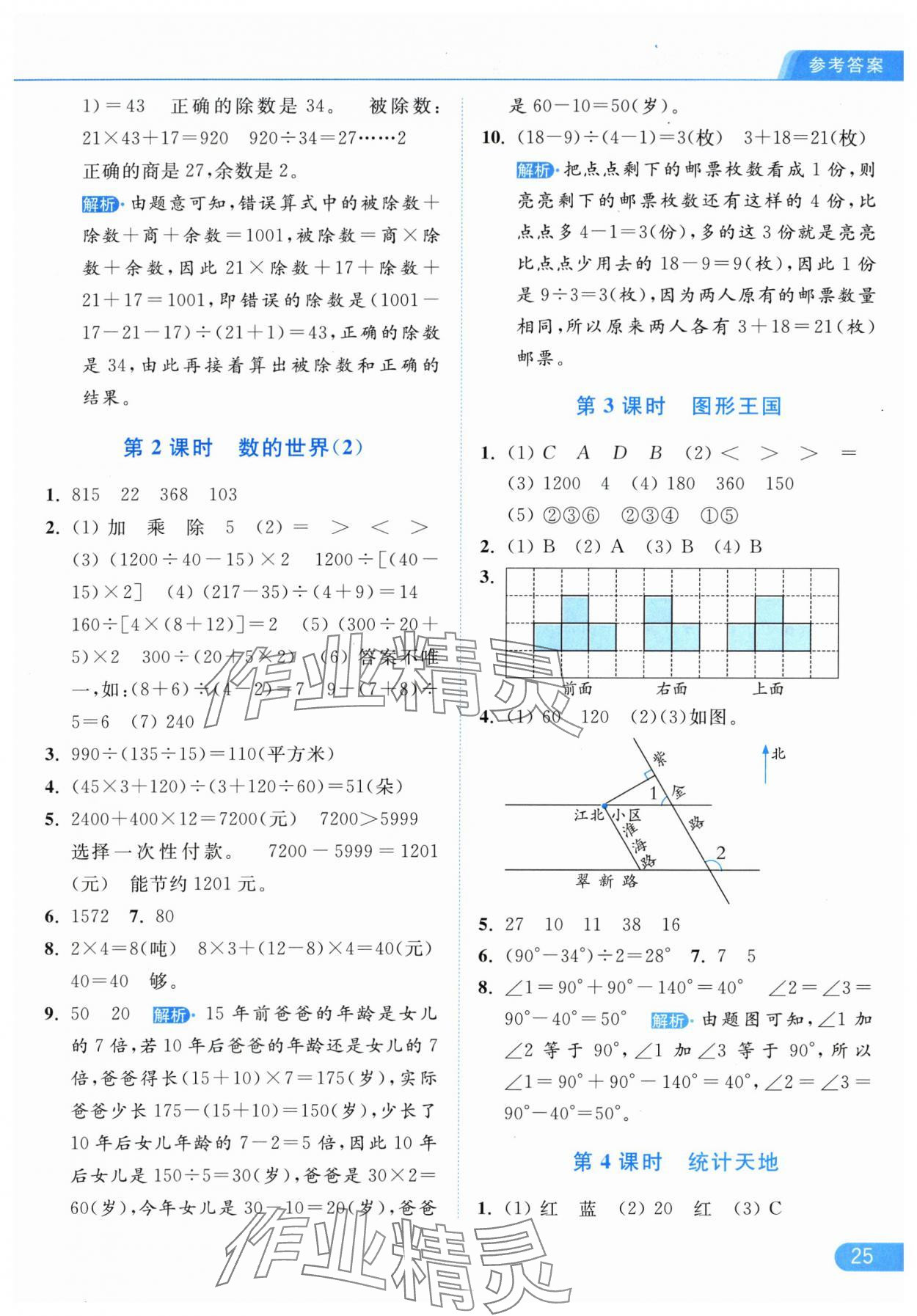 2025年亮点给力提优课时作业本四年级数学上册江苏版参考答案第25页