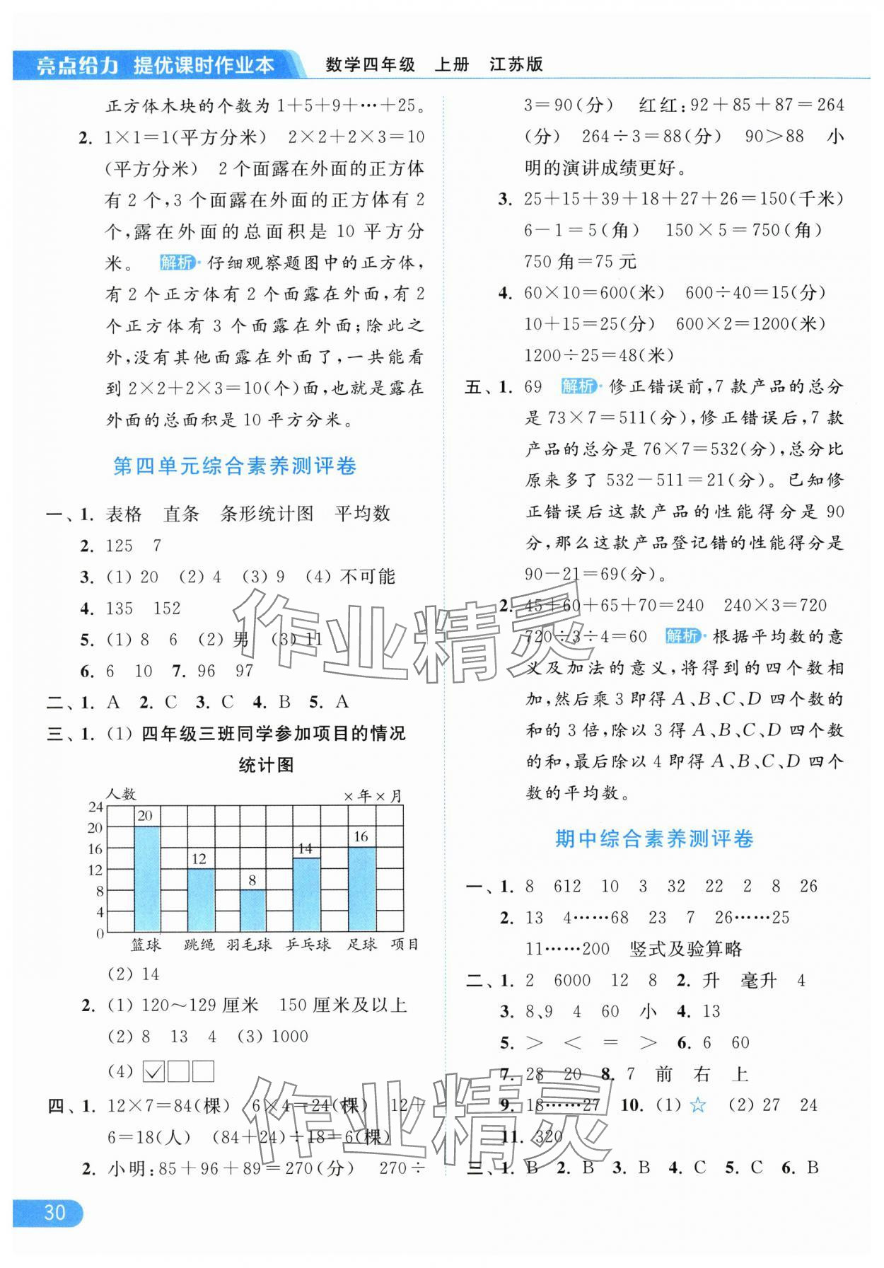 2025年亮点给力提优课时作业本四年级数学上册江苏版参考答案第30页