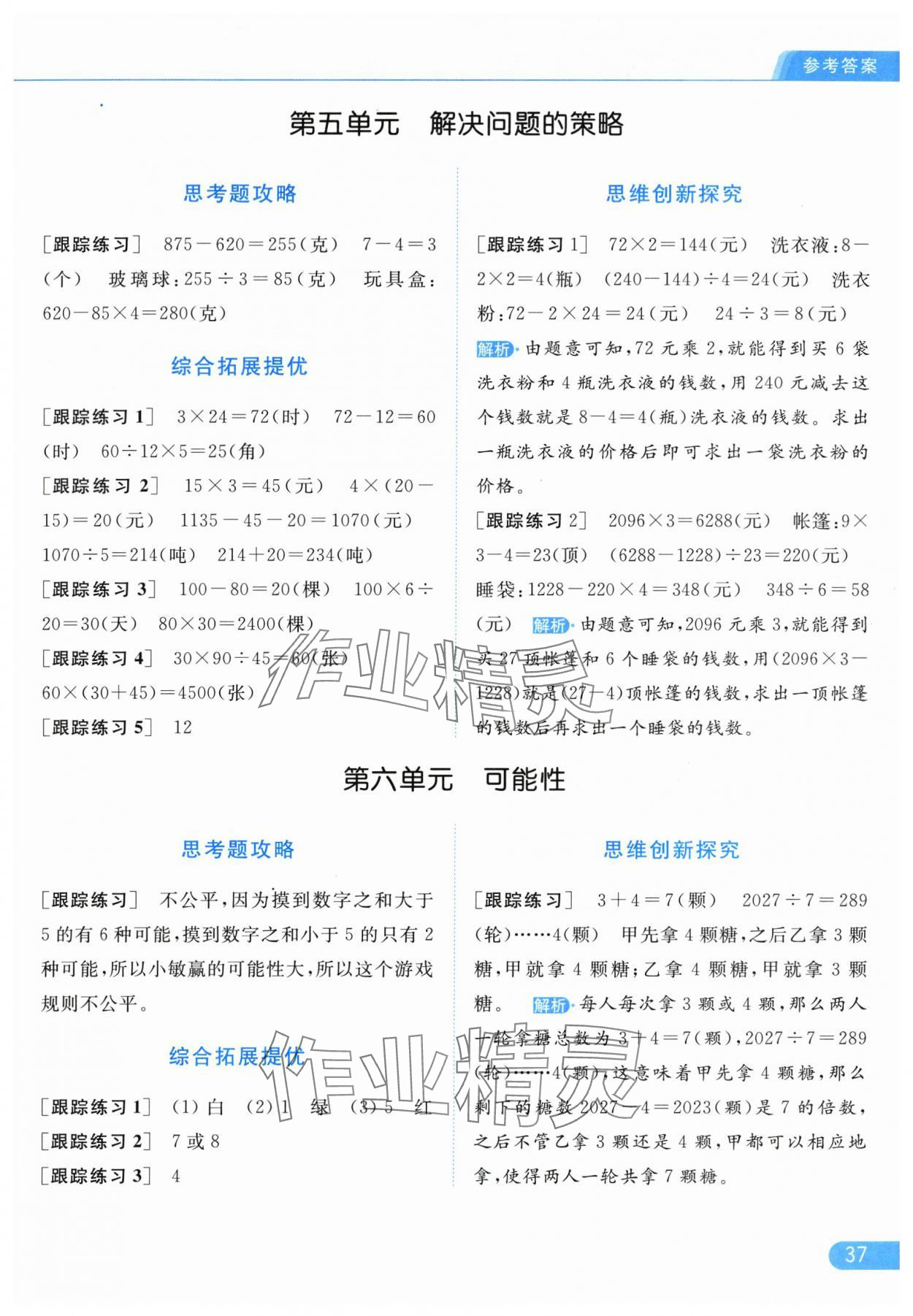 2025年亮点给力提优课时作业本四年级数学上册江苏版参考答案第37页