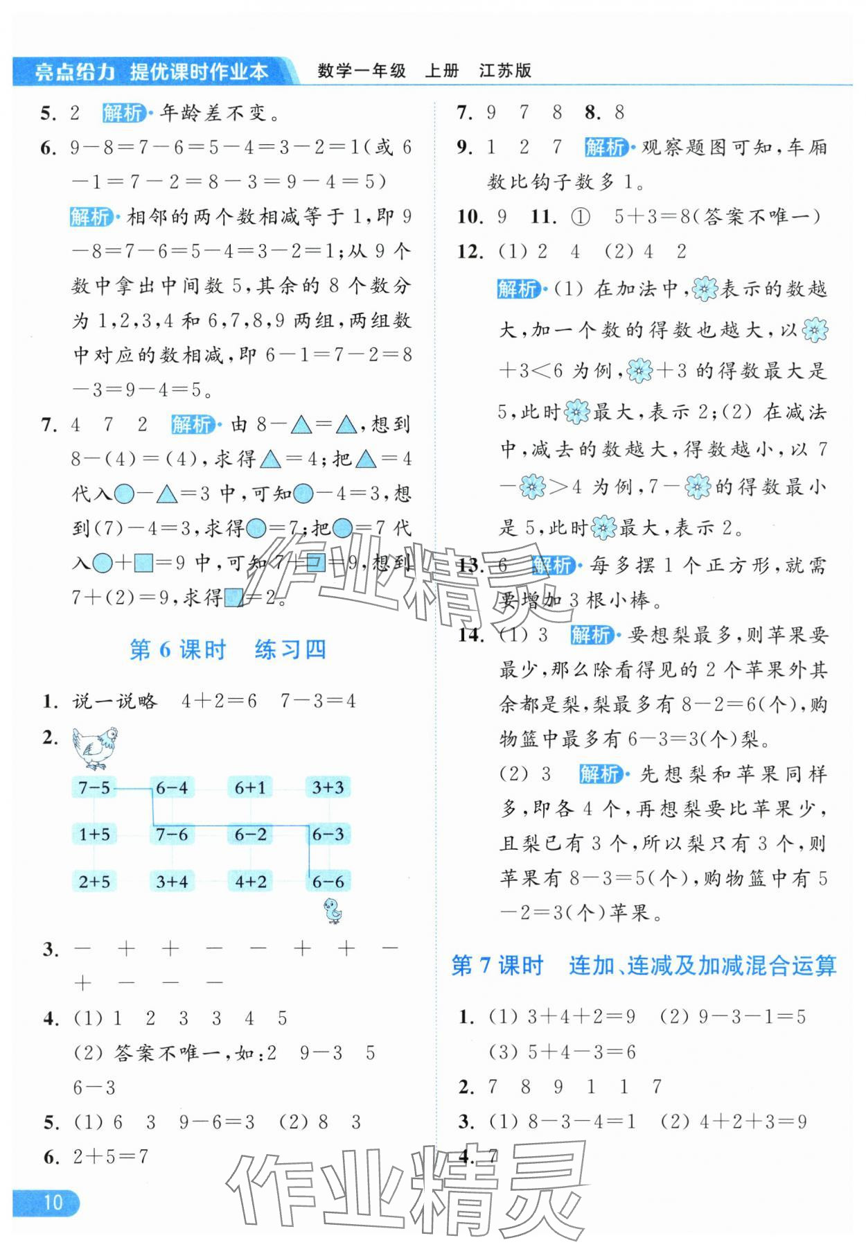 2025年亮点给力提优课时作业本一年级数学上册江苏版参考答案第10页