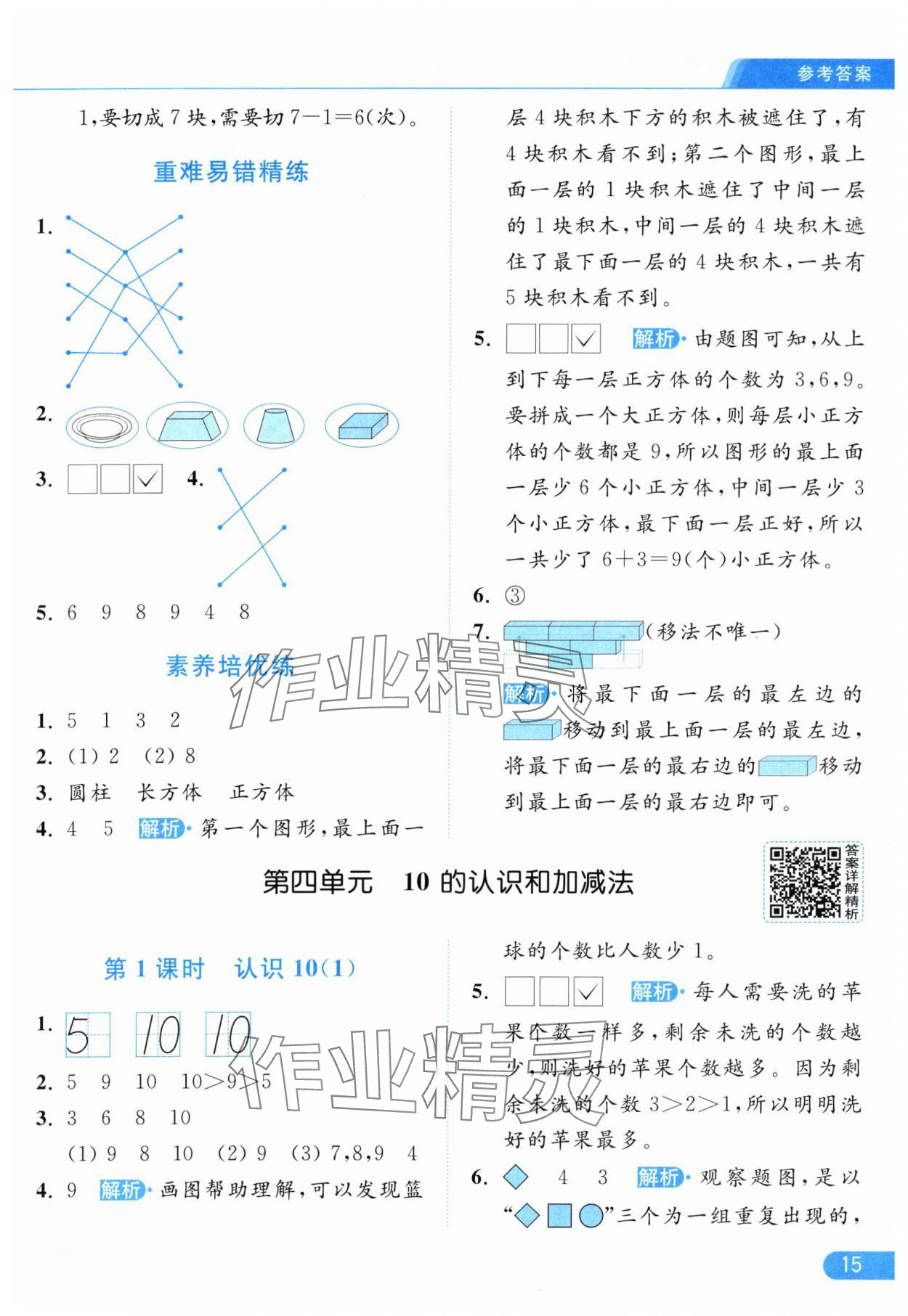 2025年亮点给力提优课时作业本一年级数学上册江苏版参考答案第15页