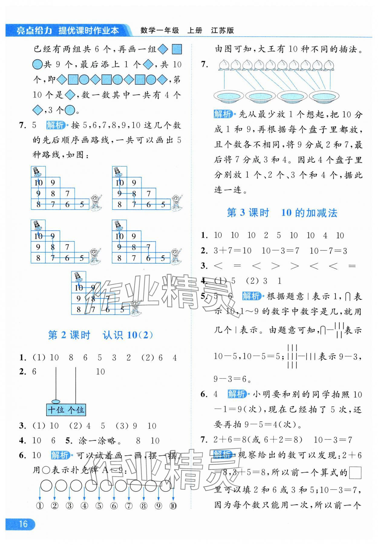 2025年亮点给力提优课时作业本一年级数学上册江苏版参考答案第16页