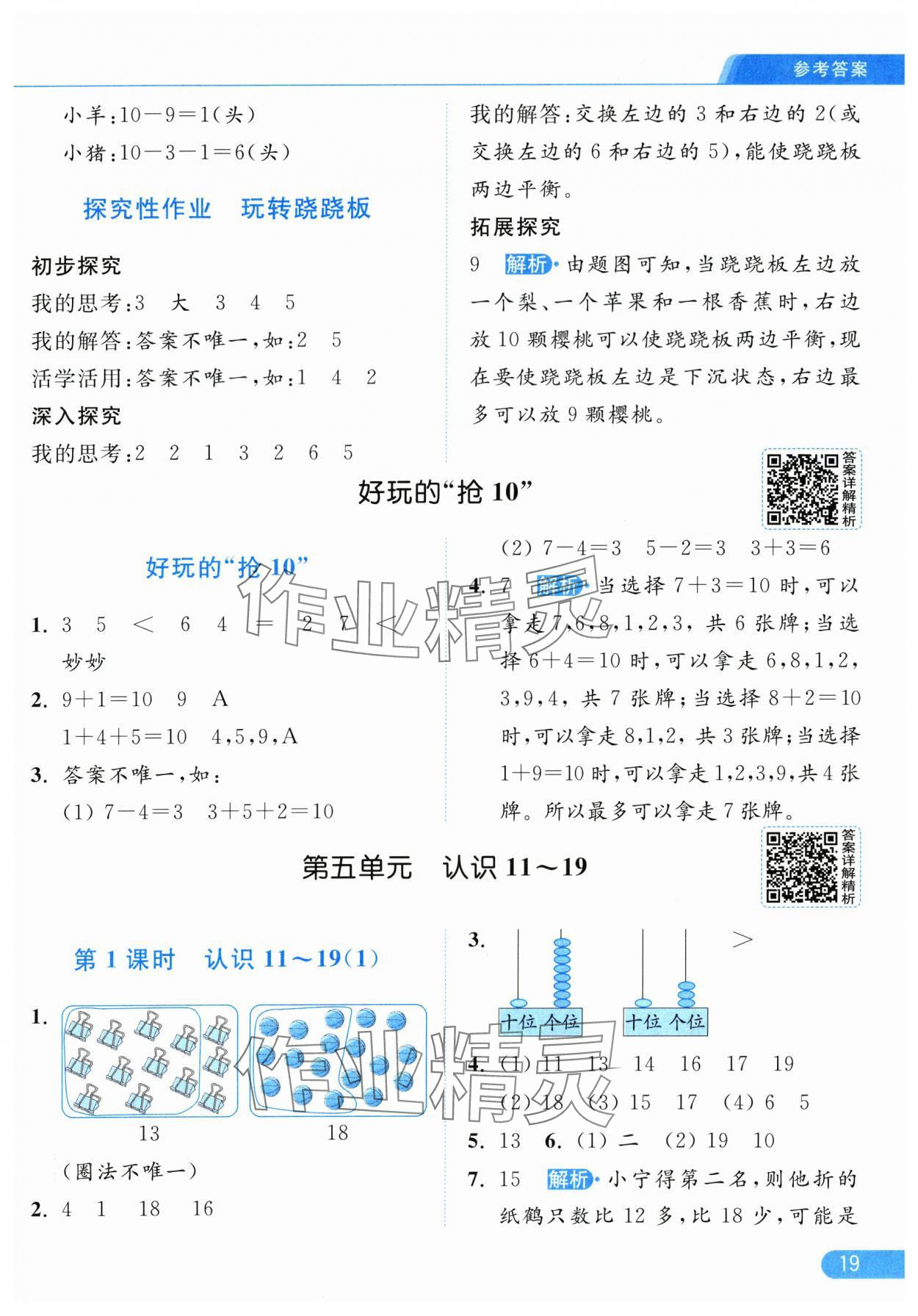 2025年亮点给力提优课时作业本一年级数学上册江苏版参考答案第19页