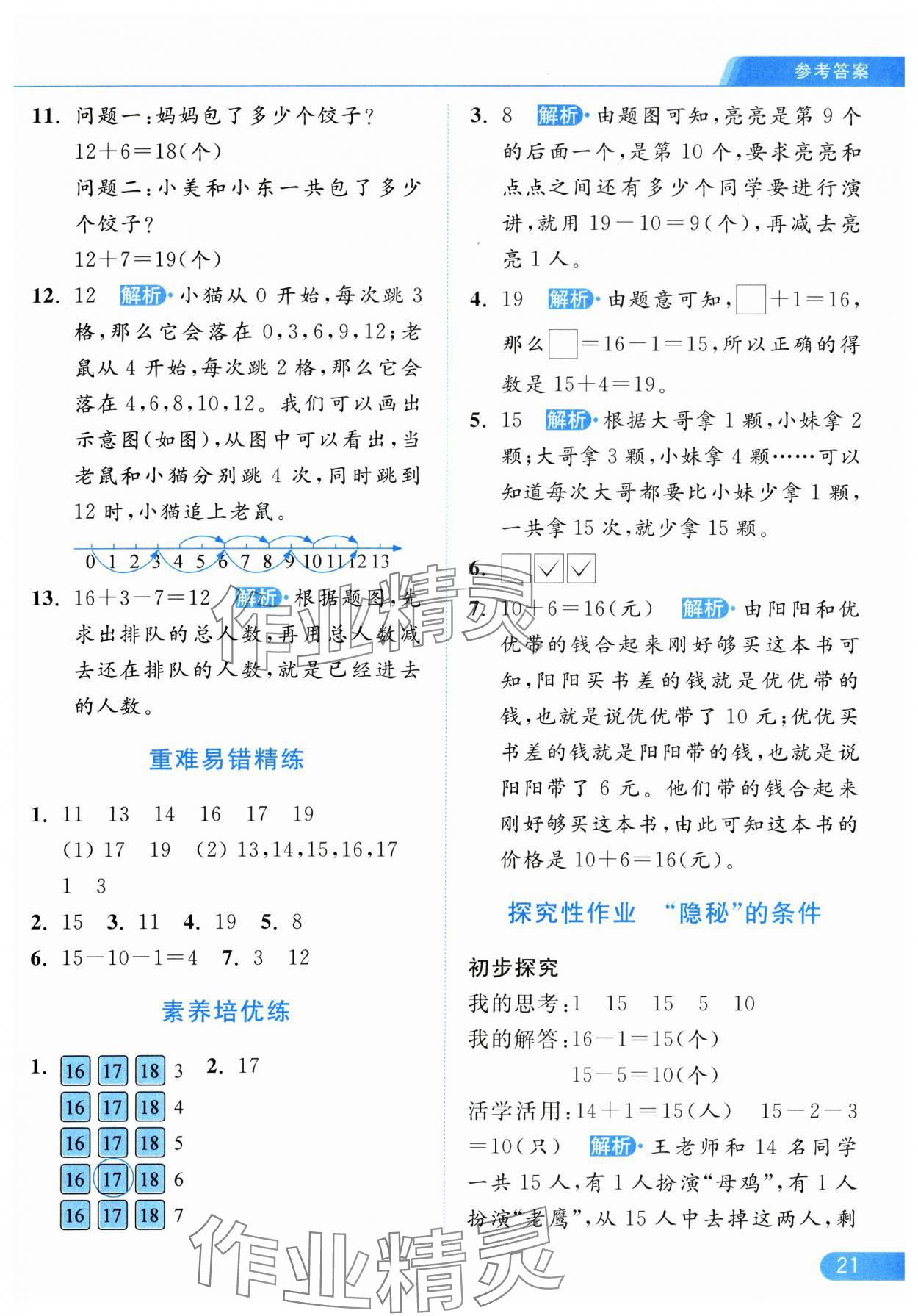 2025年亮点给力提优课时作业本一年级数学上册江苏版参考答案第21页