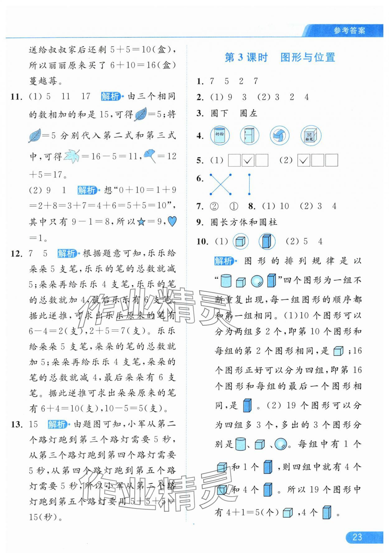2025年亮点给力提优课时作业本一年级数学上册江苏版参考答案第23页