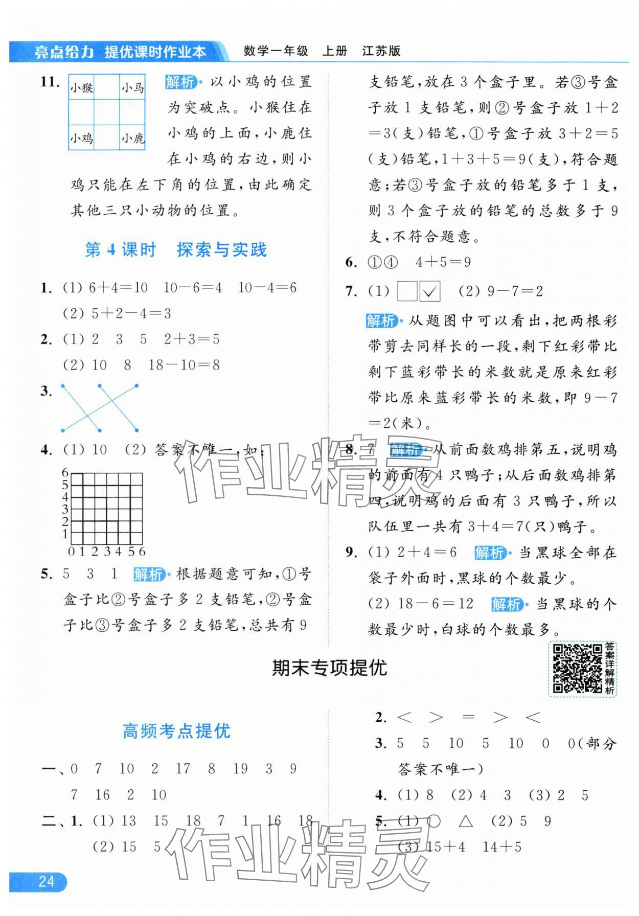 2025年亮点给力提优课时作业本一年级数学上册江苏版参考答案第24页