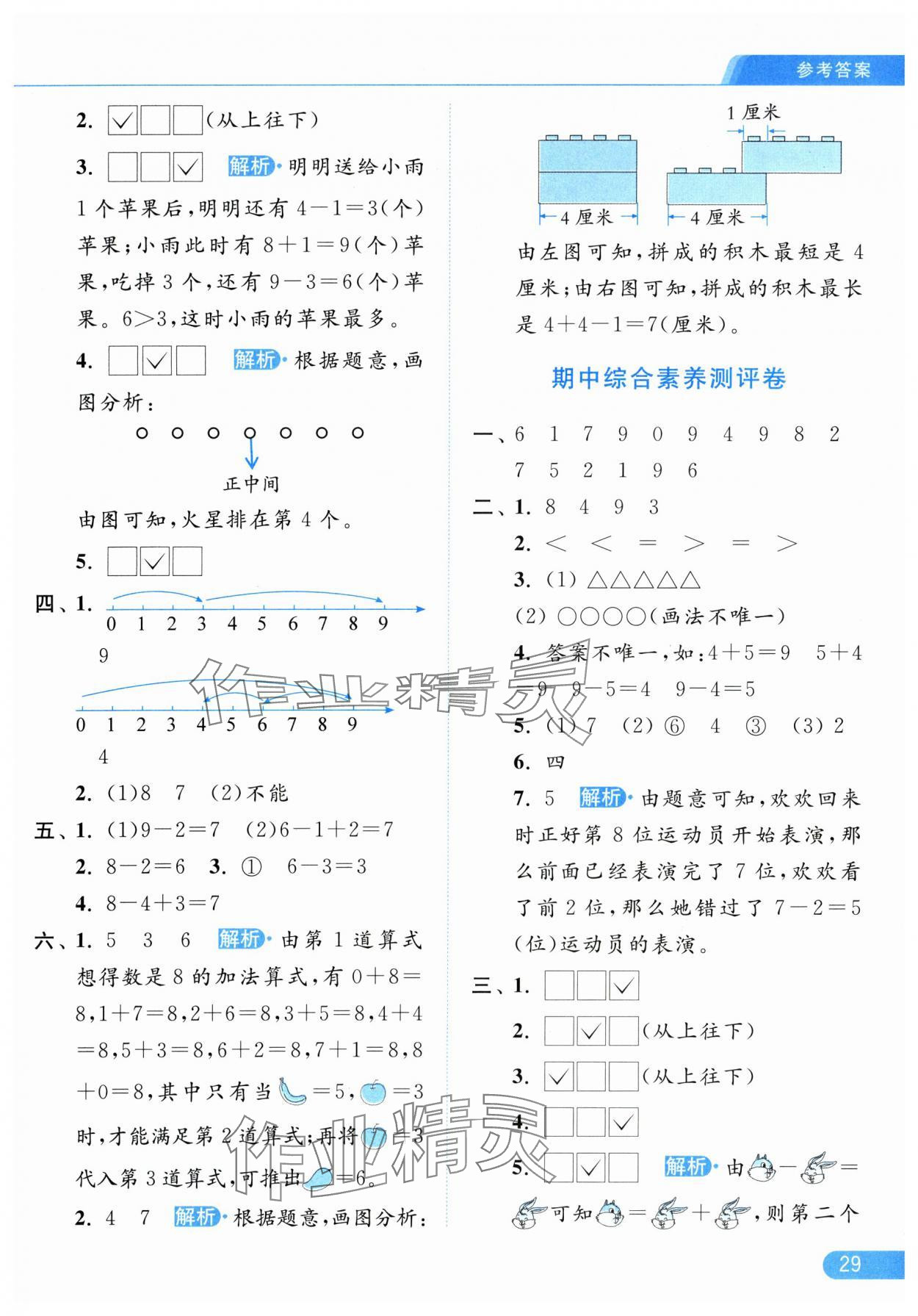 2025年亮点给力提优课时作业本一年级数学上册江苏版参考答案第29页