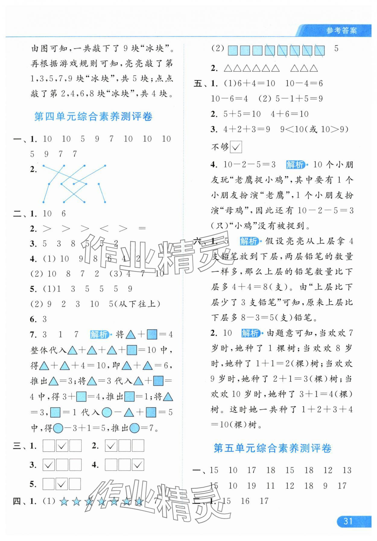 2025年亮点给力提优课时作业本一年级数学上册江苏版参考答案第31页