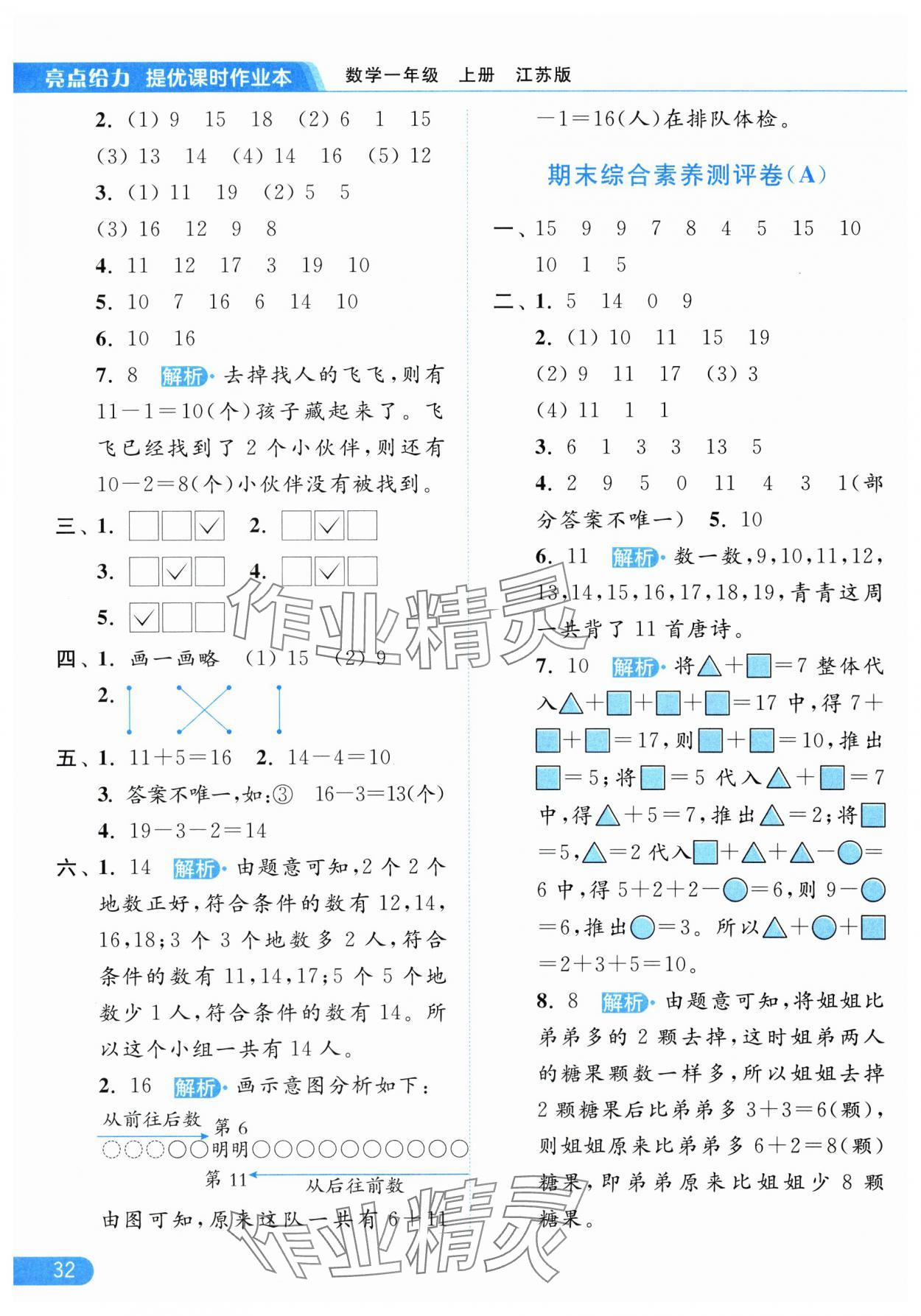 2025年亮点给力提优课时作业本一年级数学上册江苏版参考答案第32页