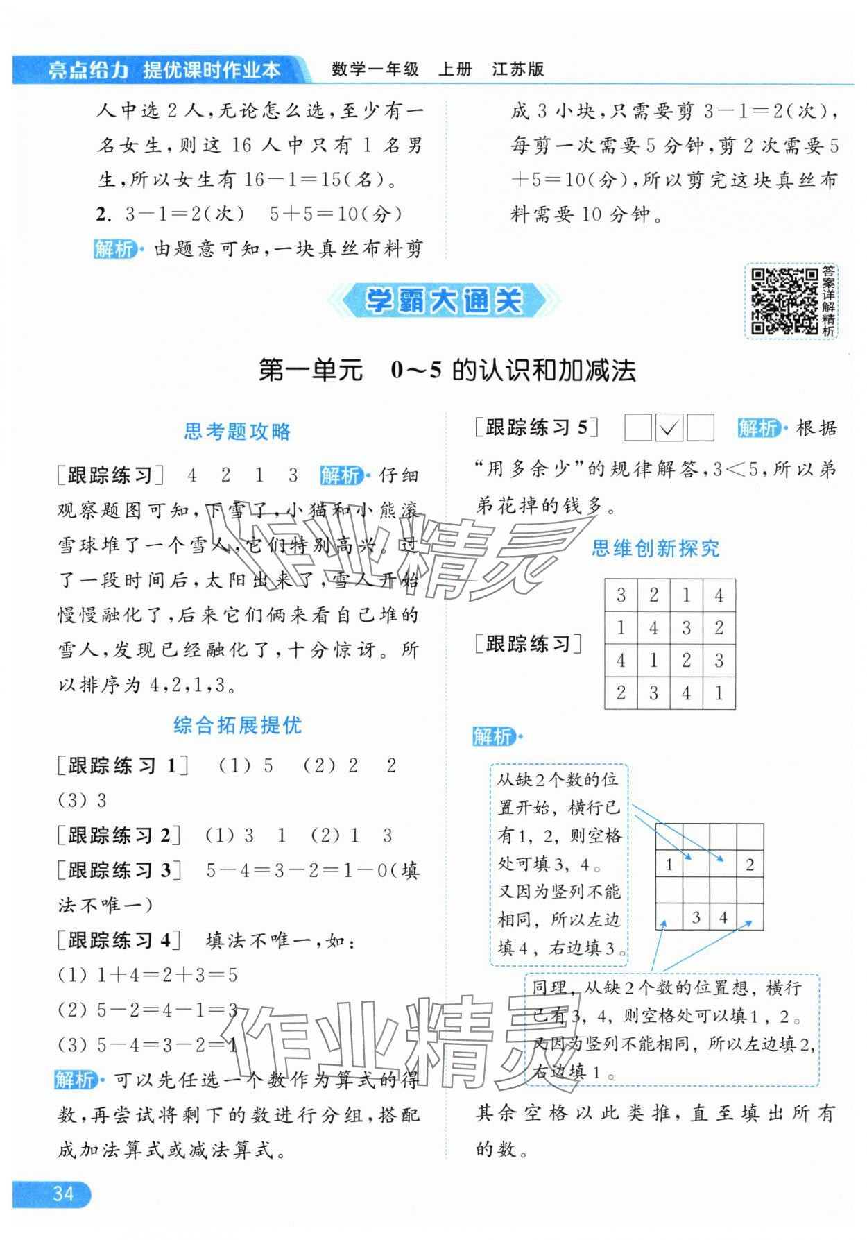 2025年亮点给力提优课时作业本一年级数学上册江苏版参考答案第34页