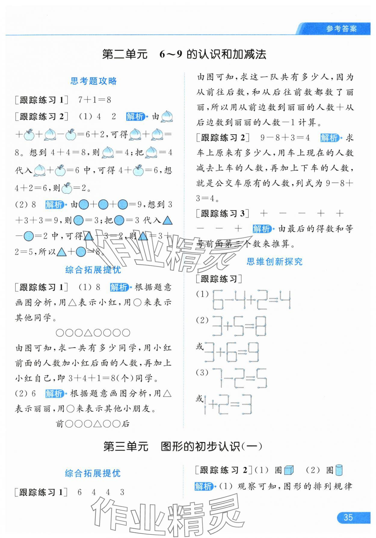 2025年亮点给力提优课时作业本一年级数学上册江苏版参考答案第35页