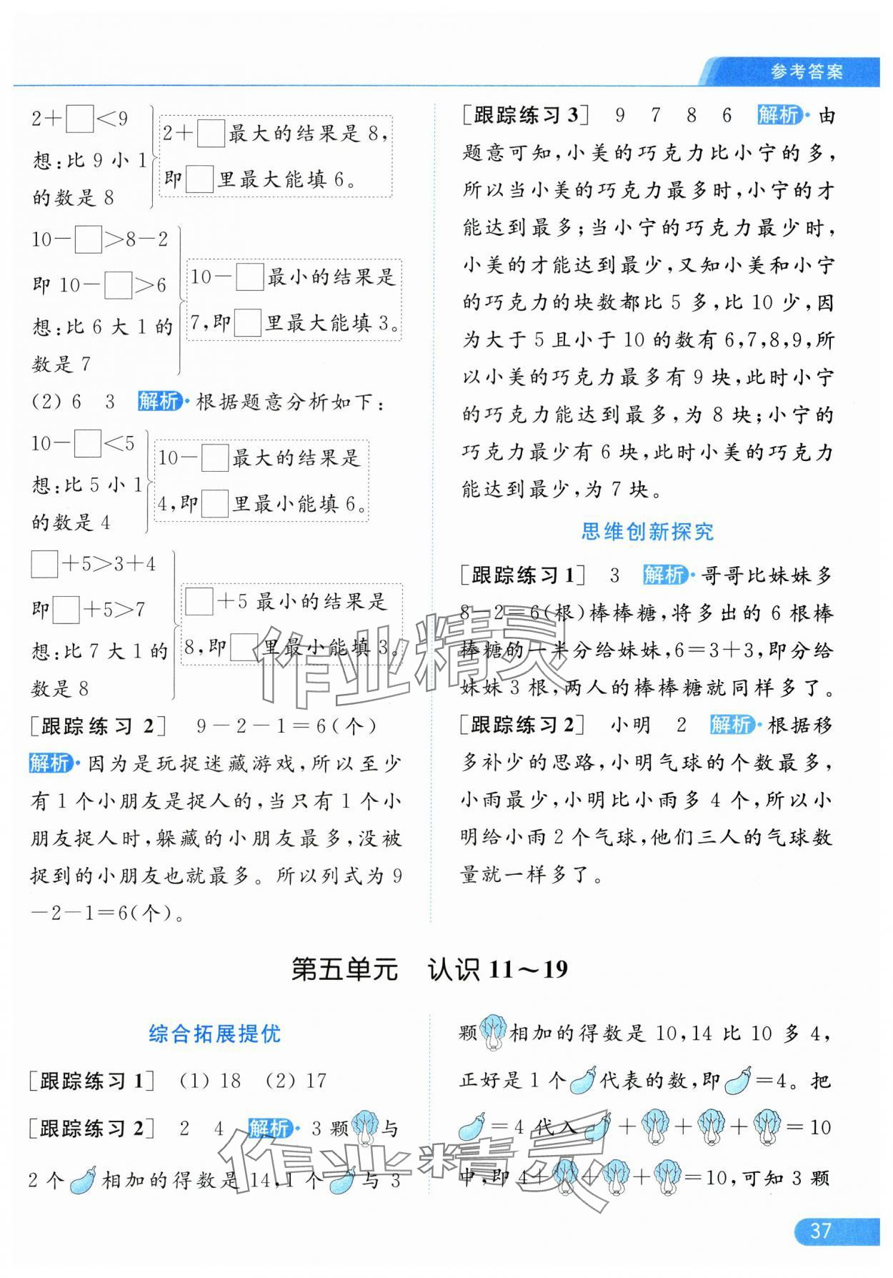2025年亮点给力提优课时作业本一年级数学上册江苏版参考答案第37页