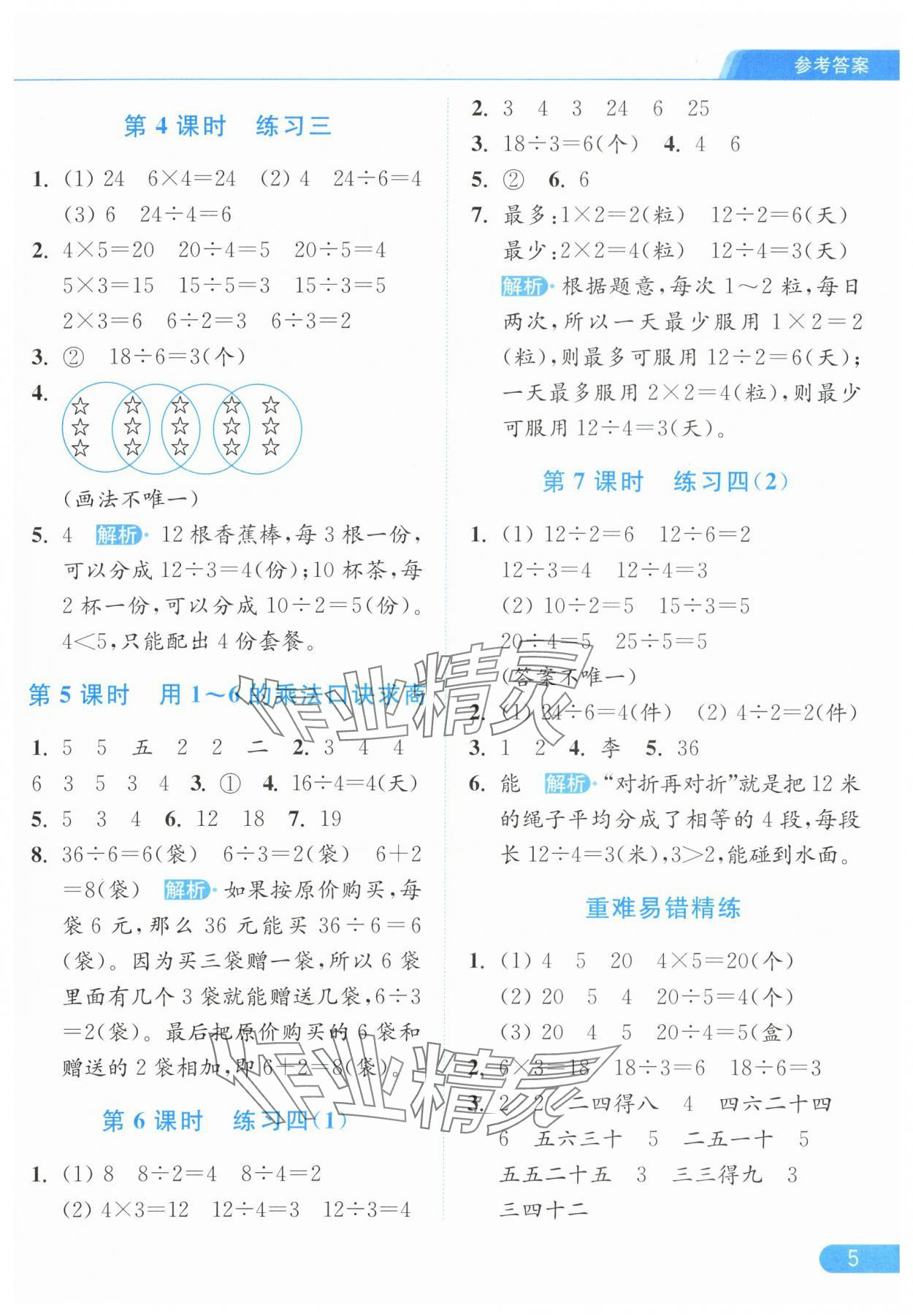 2025年亮点给力提优课时作业本二年级数学上册江苏版参考答案第5页