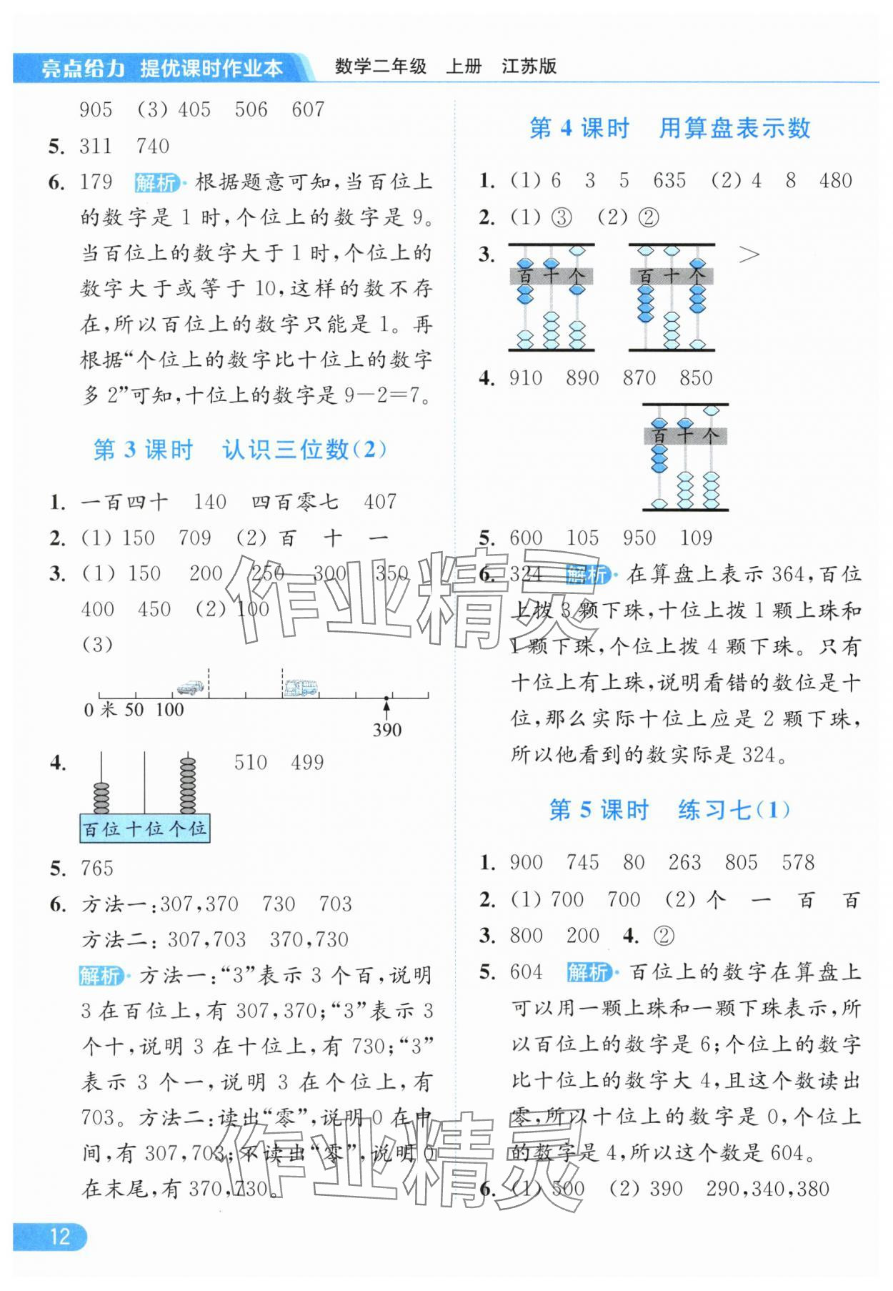 2025年亮点给力提优课时作业本二年级数学上册江苏版参考答案第12页
