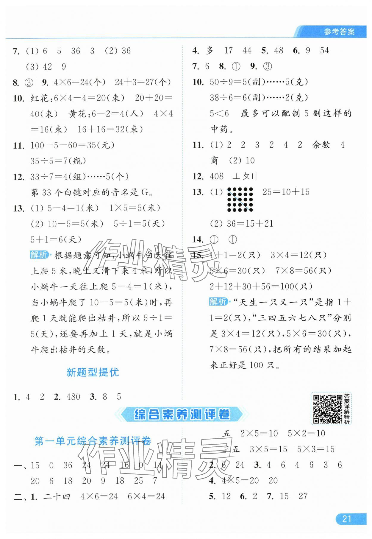 2025年亮点给力提优课时作业本二年级数学上册江苏版参考答案第21页