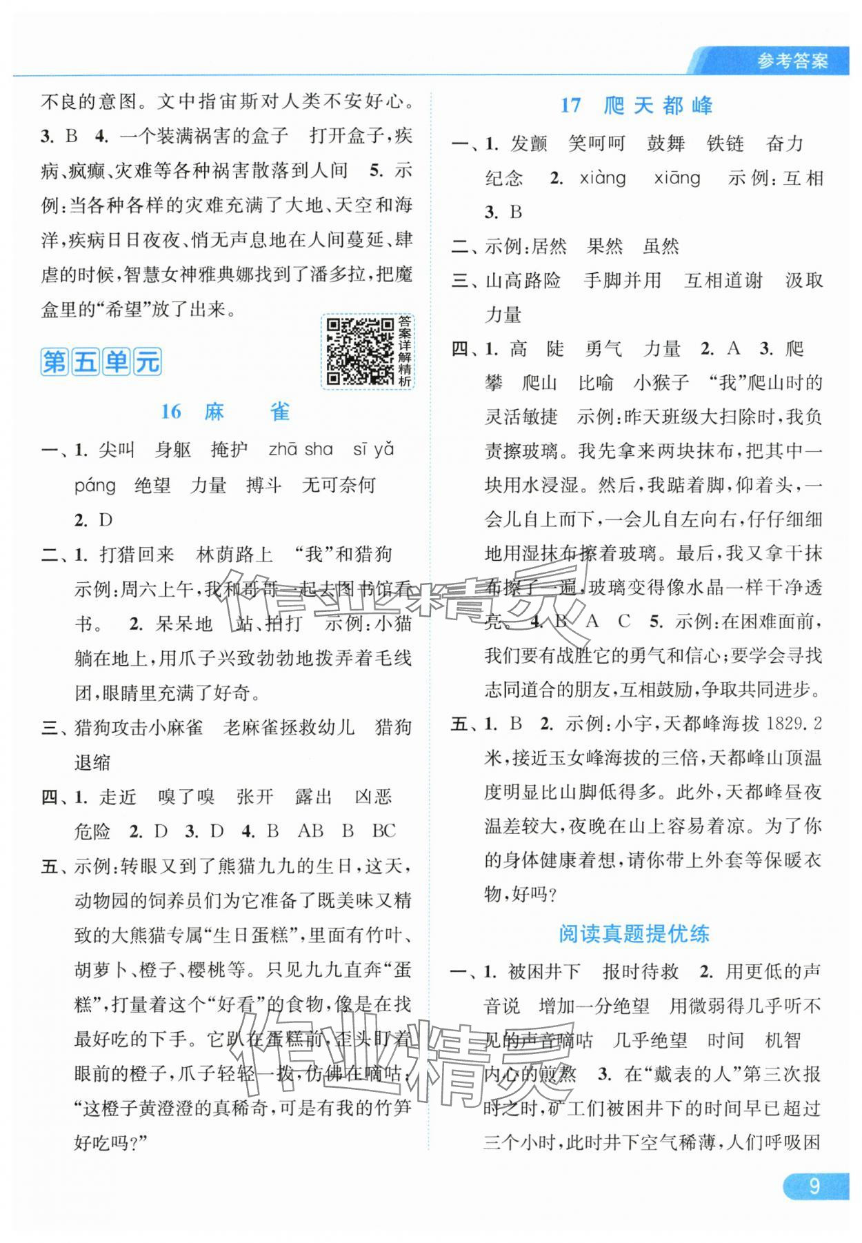 2025年亮点给力提优课时作业本四年级语文上册统编版参考答案第9页