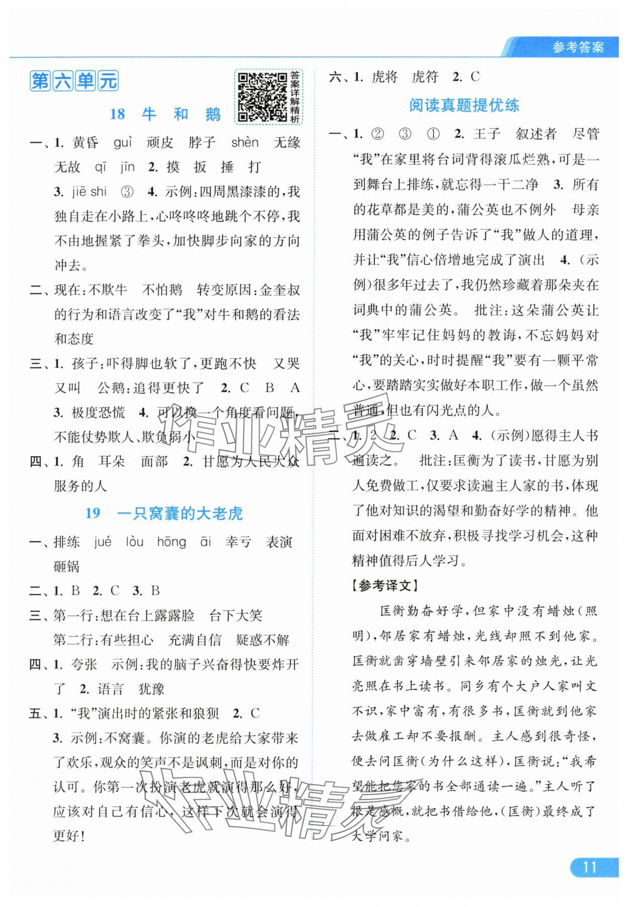 2025年亮点给力提优课时作业本四年级语文上册统编版参考答案第11页