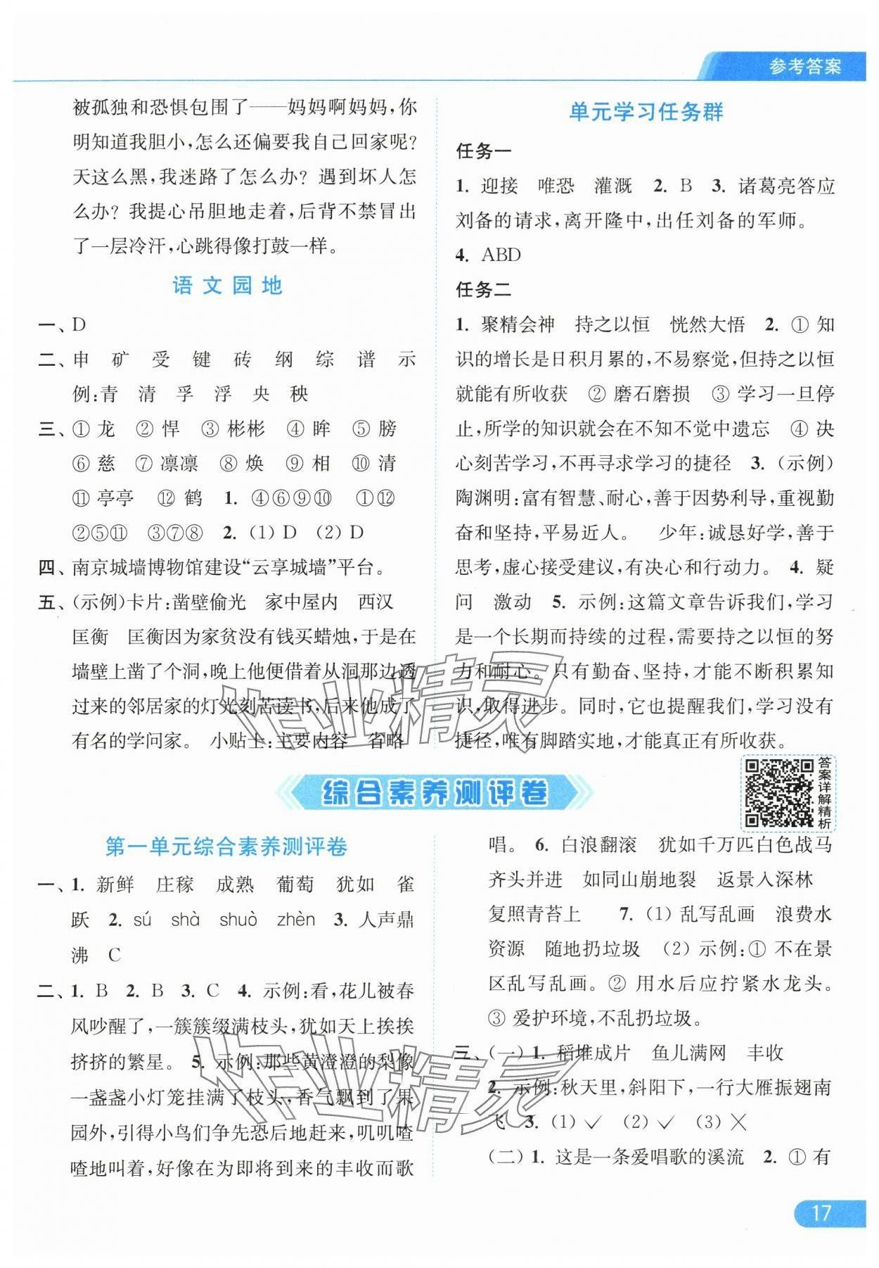 2025年亮点给力提优课时作业本四年级语文上册统编版参考答案第17页