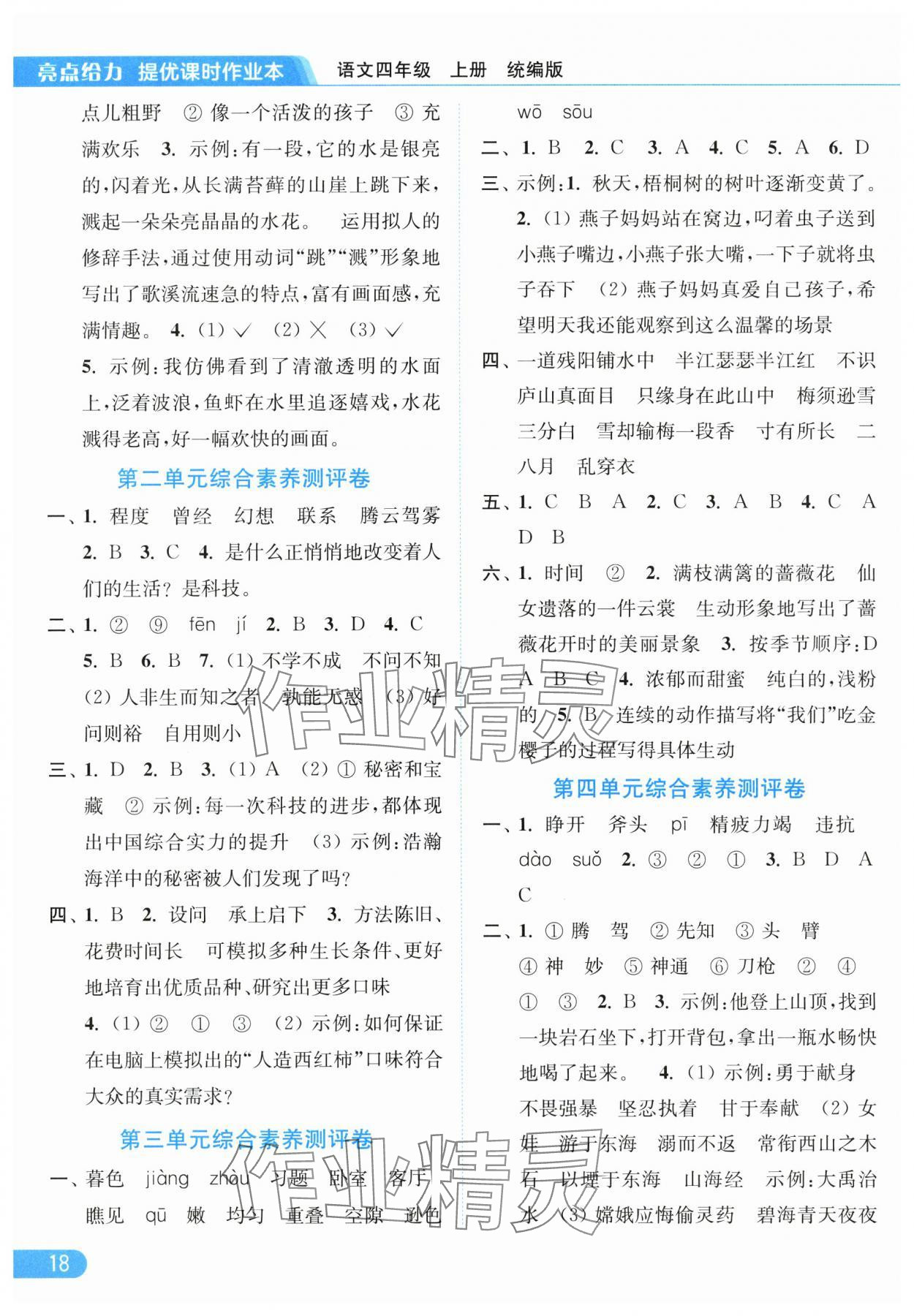 2025年亮点给力提优课时作业本四年级语文上册统编版参考答案第18页
