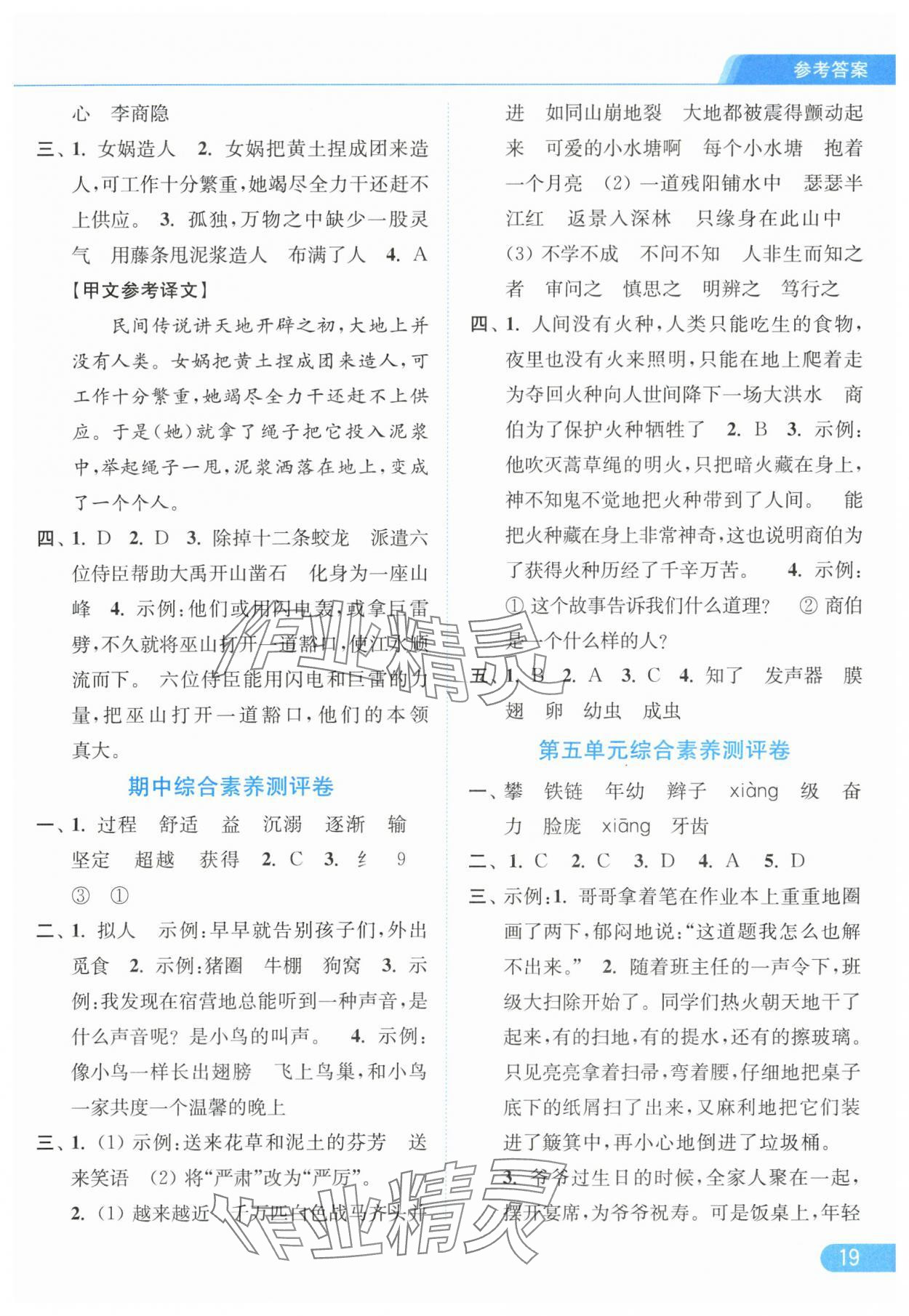 2025年亮点给力提优课时作业本四年级语文上册统编版参考答案第19页